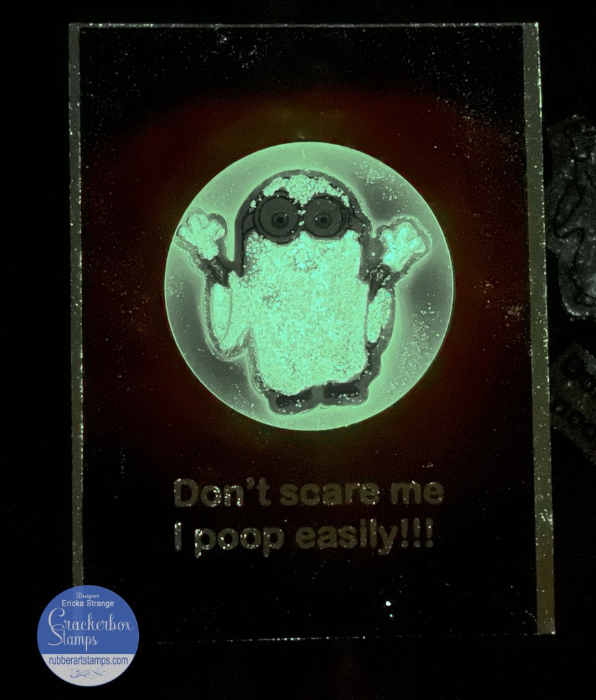 I used my WOW! Embossing pen and colored in my ghost and heat embossed him with Galaxy Glow powder so he glows in the dark!