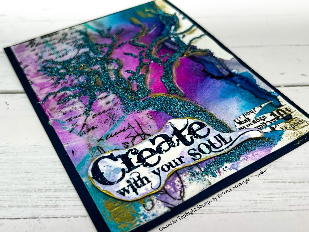 I added the sentiment from the Visible Image Create With Your Soul and stamped it in Versafine Clair Twilight ink.