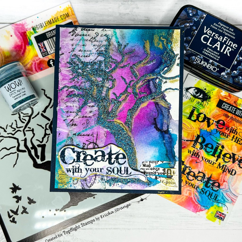 Happy Friday friends! Today I am playing with the new Visible Image stencil called Branch Out. I love this stencil and used some WOW! Embossing powder to create a fun texture.