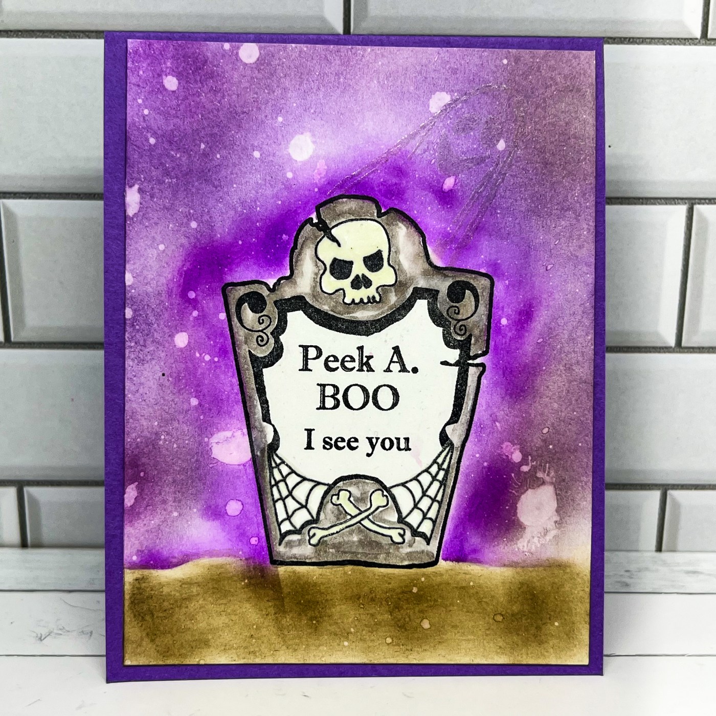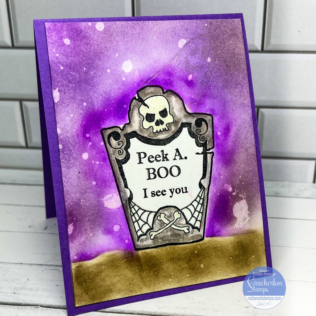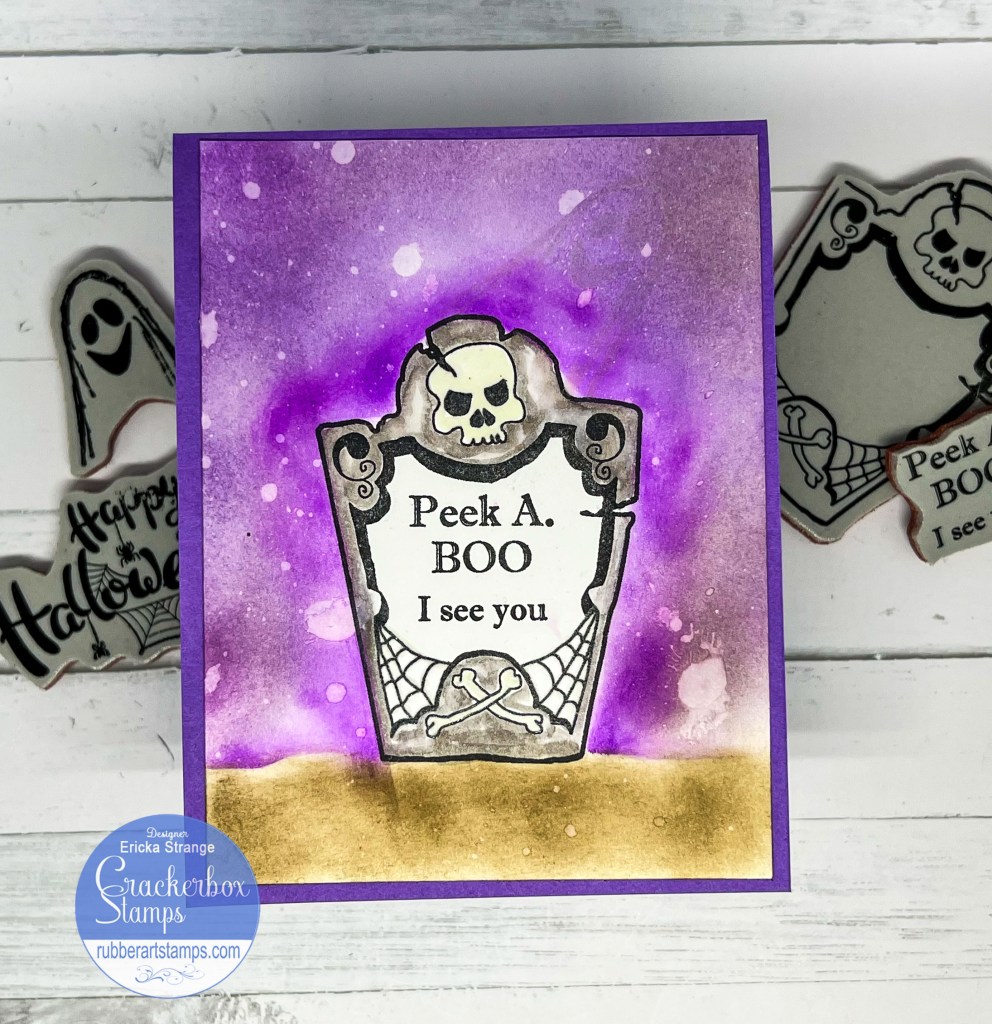 Hello friends! Today I am playing with the Crackerbox Stamps new Halloween release and using the Tombstone Lg with this fun Peek A Boo sentiment that fits perfectly in the Tombstone.