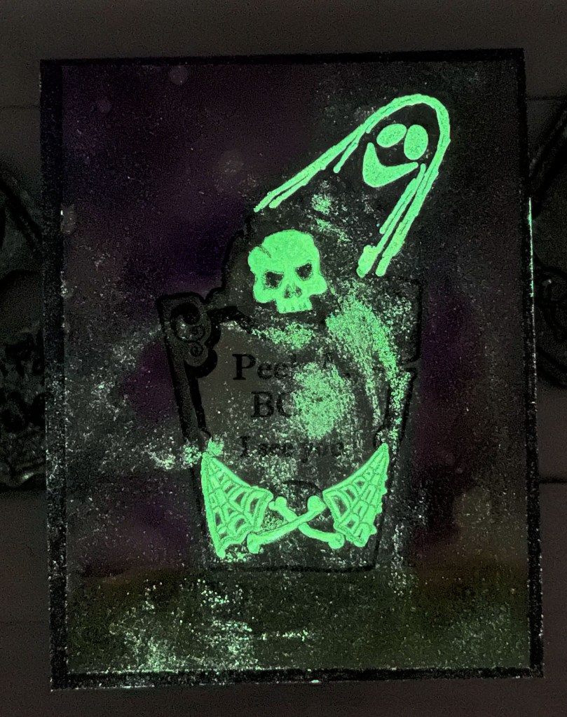 Once my ink was dry, I added a little surprise with a glow in the dark Ghost Sketched. It was hard to get a good photo of the glow in the dark portion but here it is.