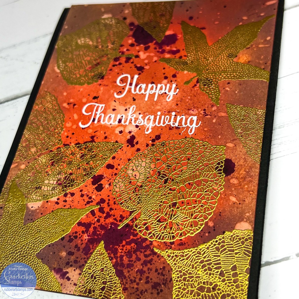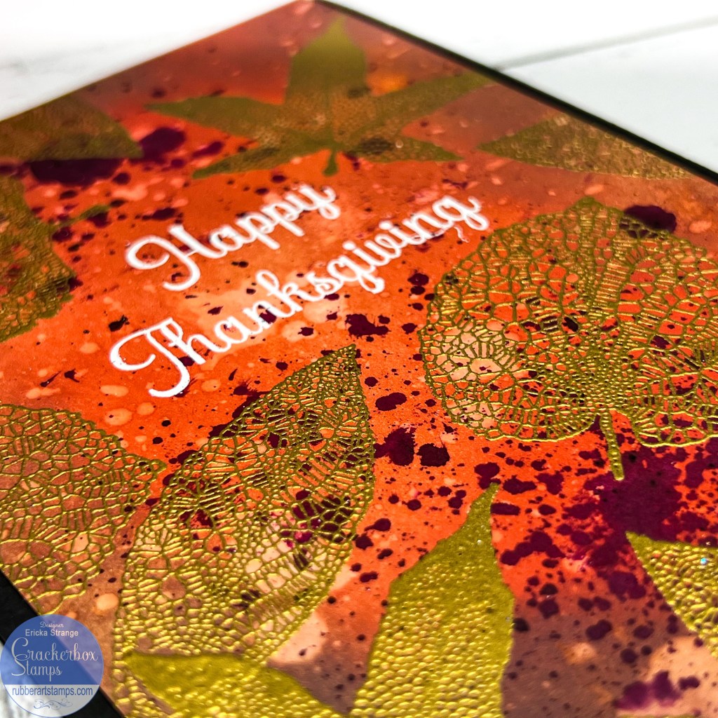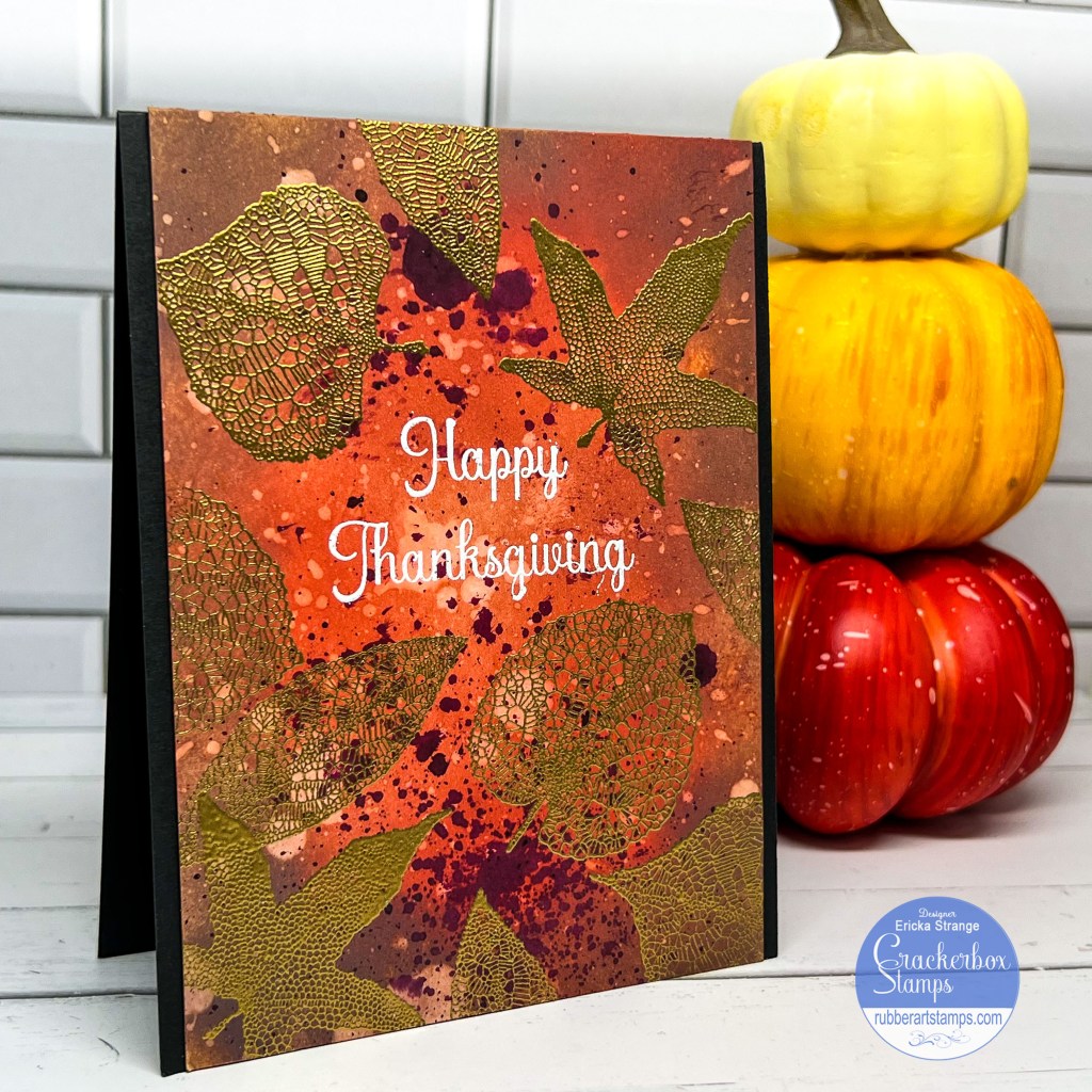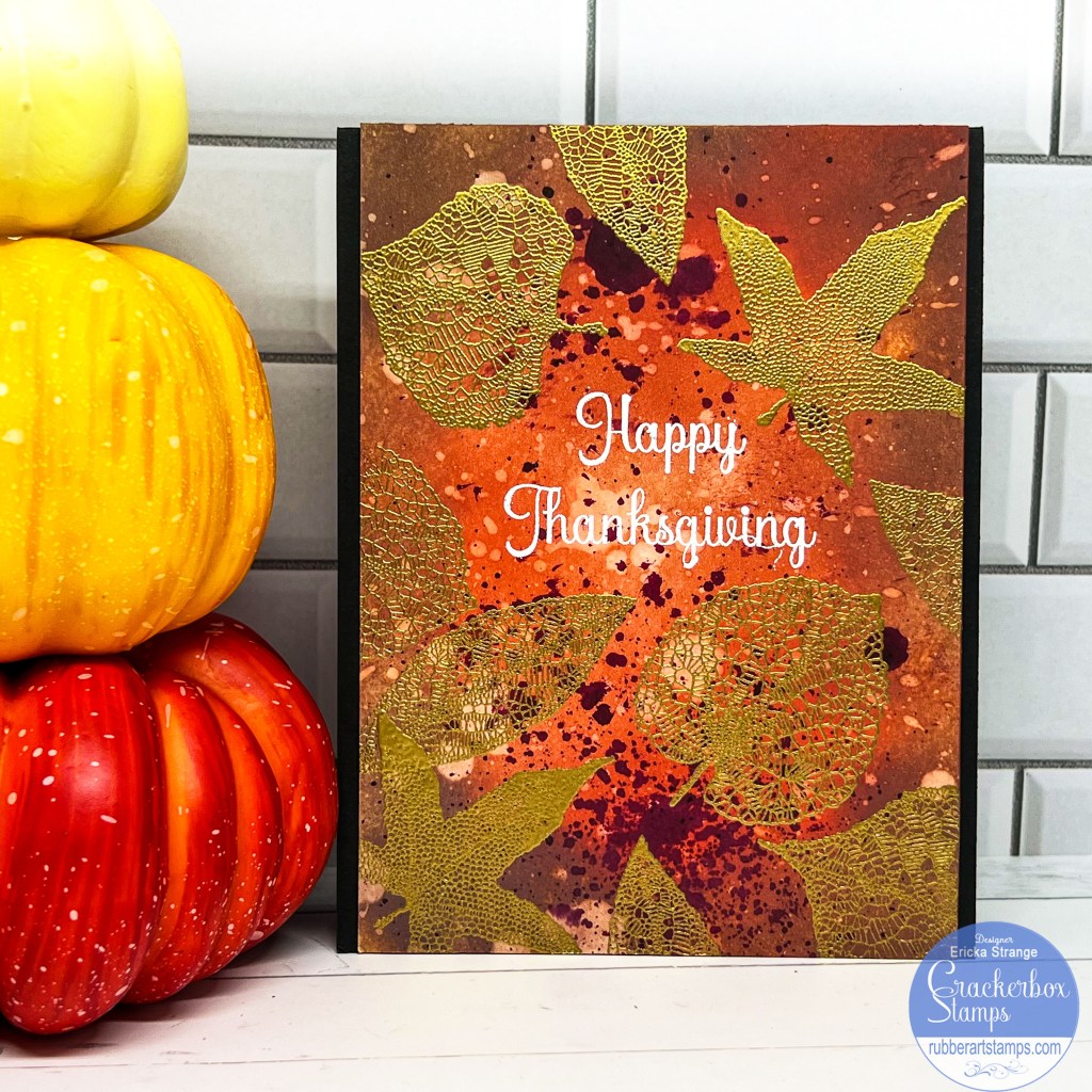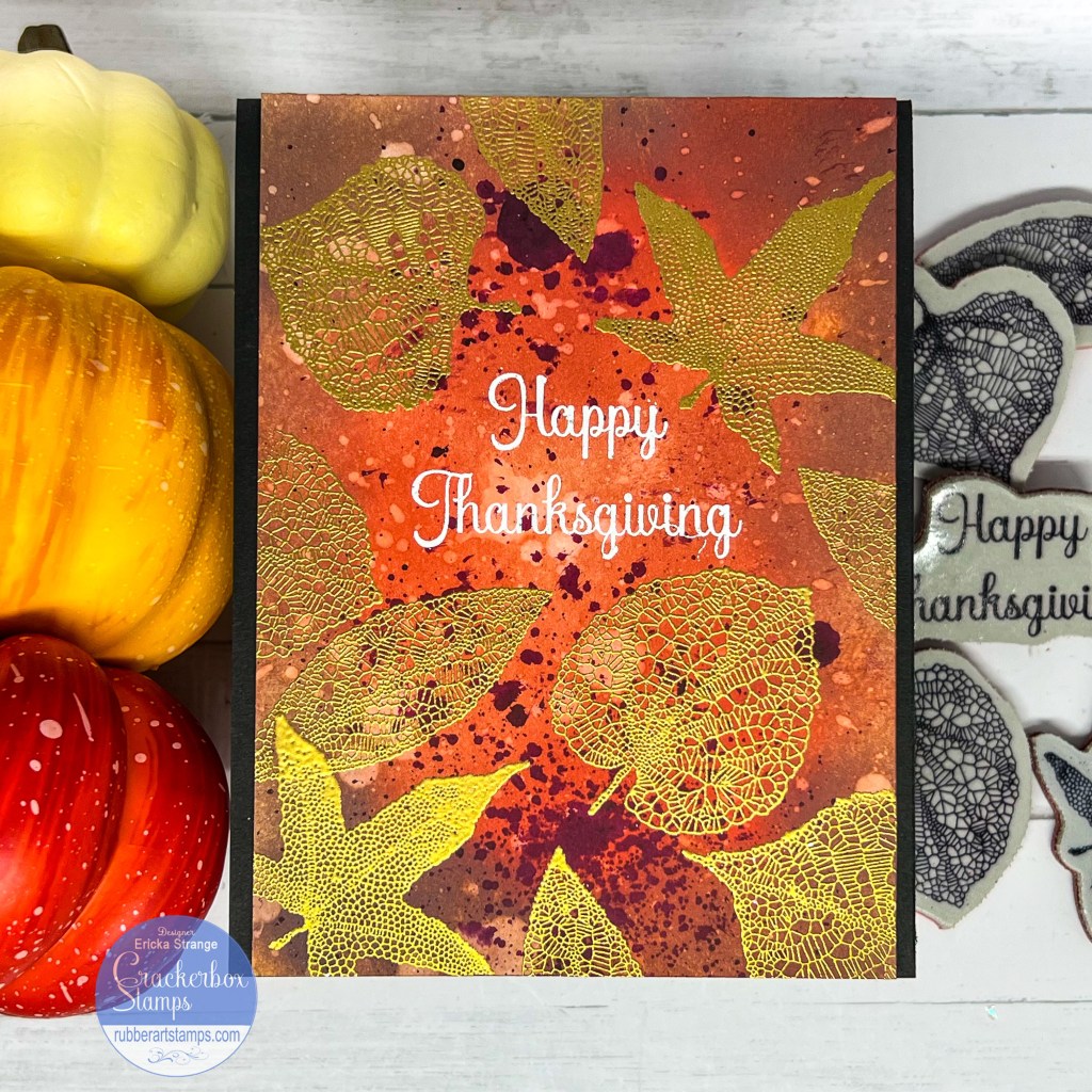 Hello friends, today I have a Thanksgiving card I made using the Crackerbox Stamps Skeleton Leaves with Distress Inks along with gold embossing. I love these gorgeous leaves and the beautiful details in the stamps.