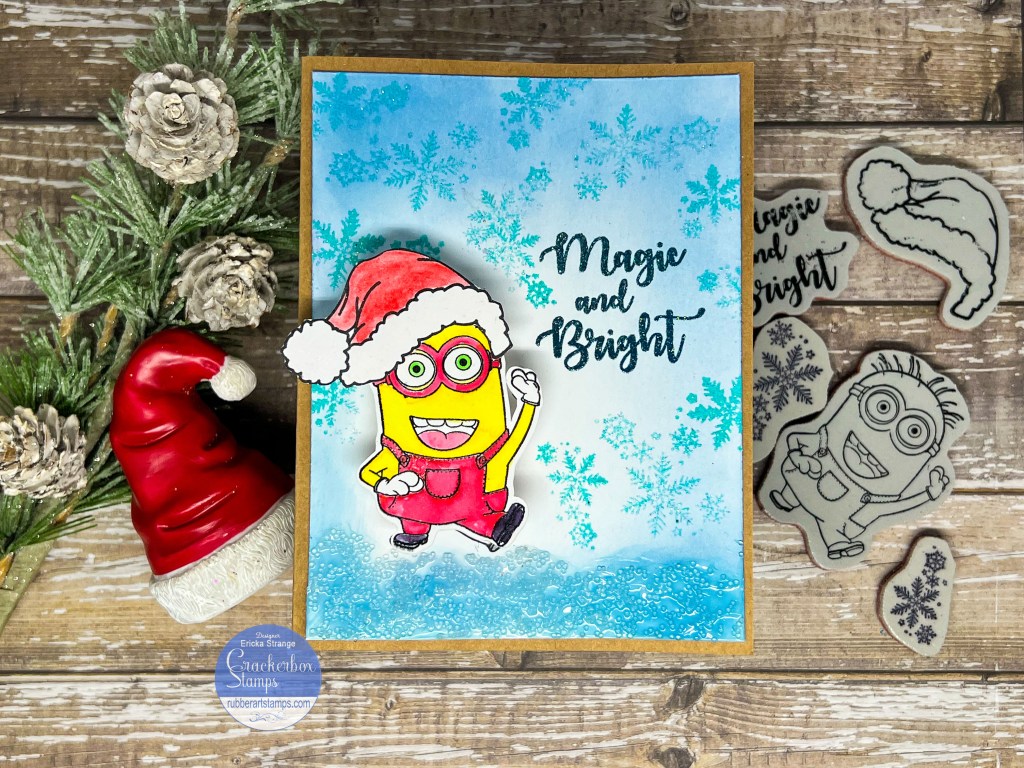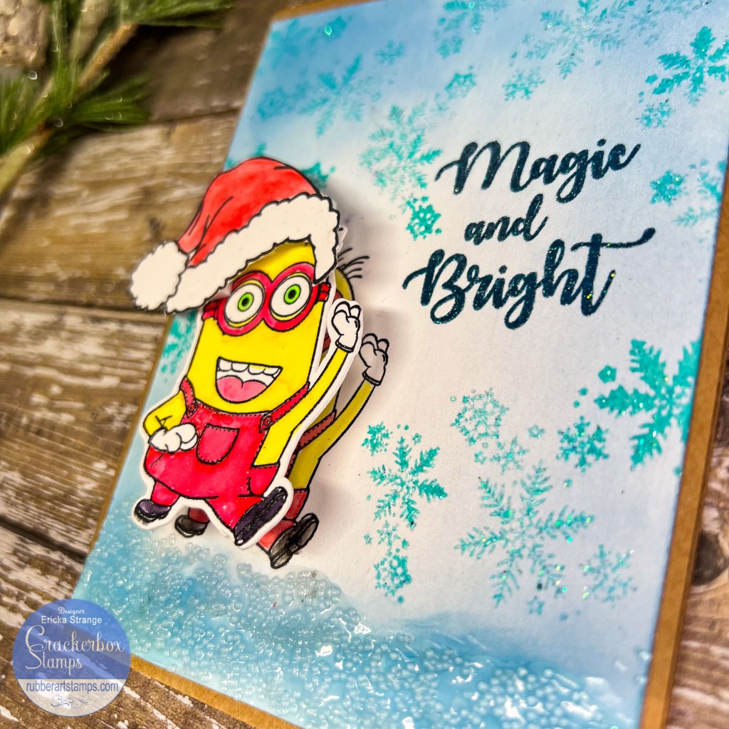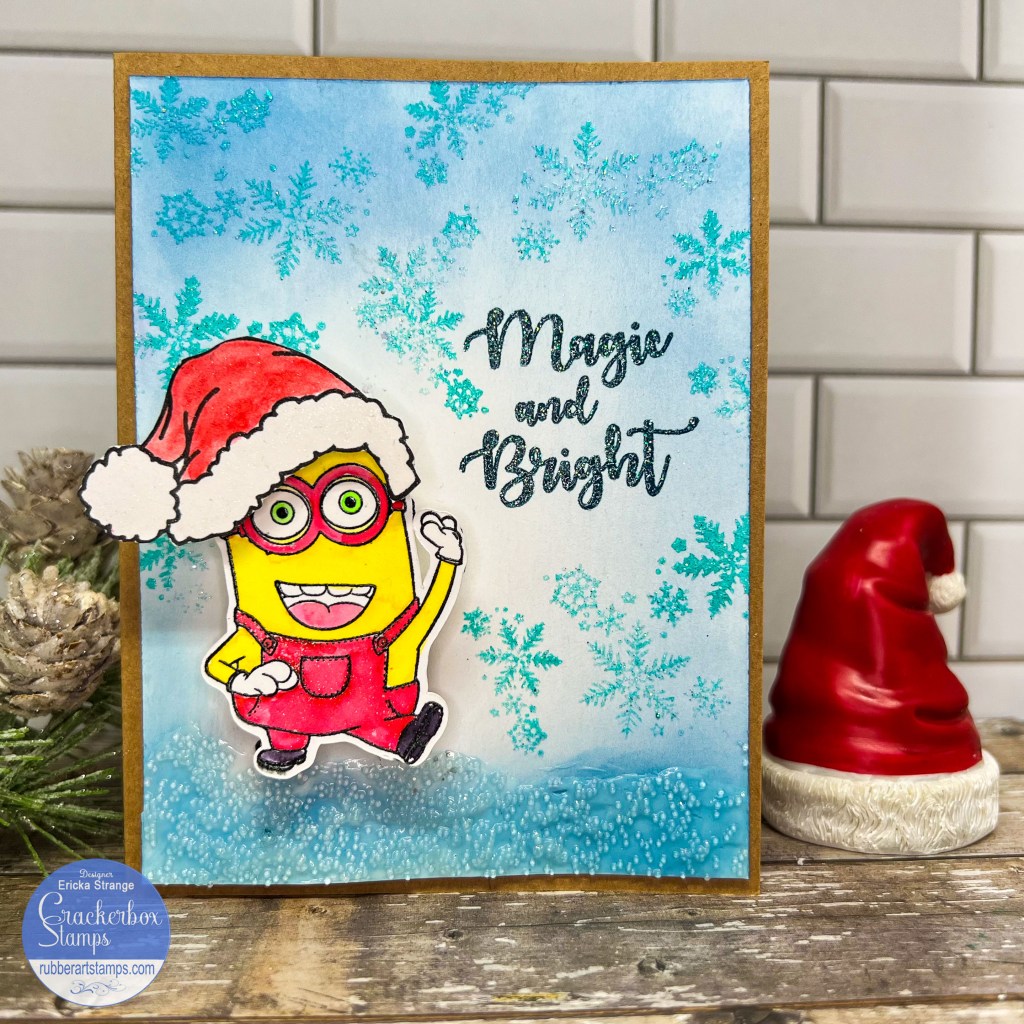 I finished my card by adding the Magic and Bright sentiment and used some clear sparkle to heat emboss the image. I love this Santa’s Hat and can’t wait to use it on some more of my minions to make fun Christmas cards. Thank you for stopping by and I hope you have a wonderful week!