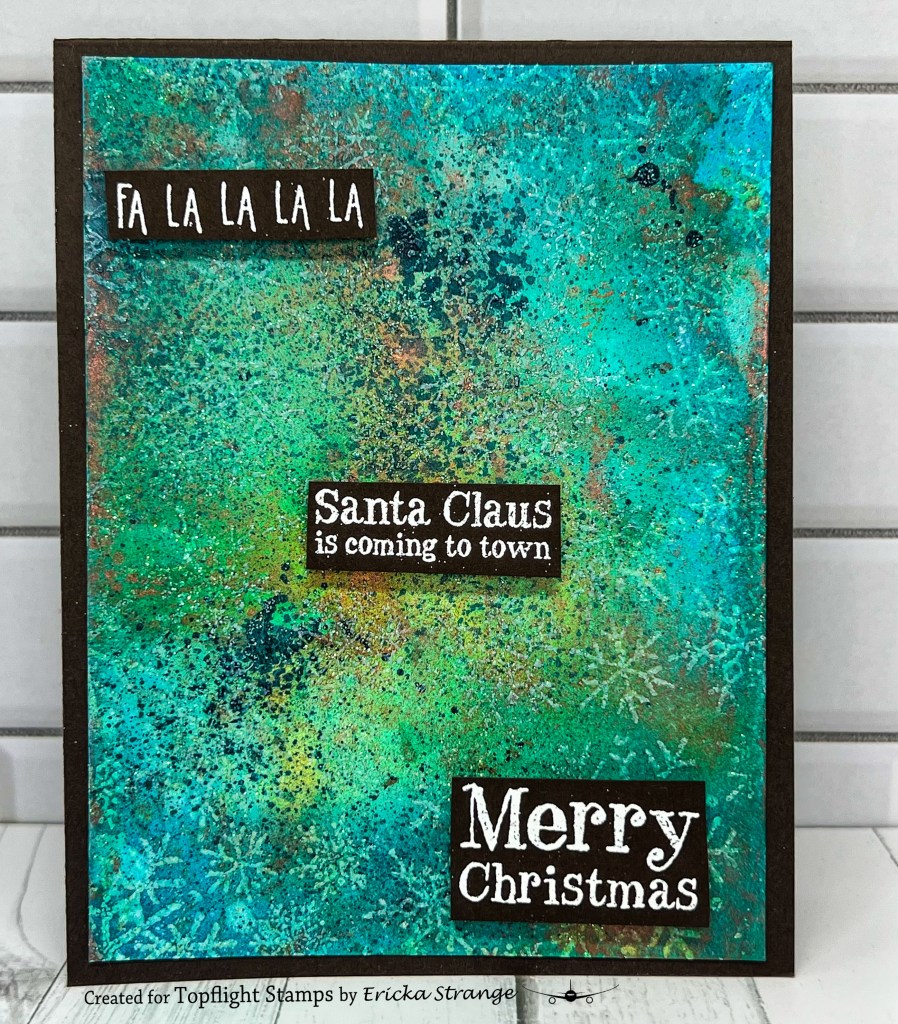 Hello Crafty friends! I hope your December is starting off well. I am still busy making Christmas cards and thought that I would share this shiny grungy Christmas card using Lavinia Mystical Mists and the Darkroom Door Snowflakes and Christmas Sentiment Strip.