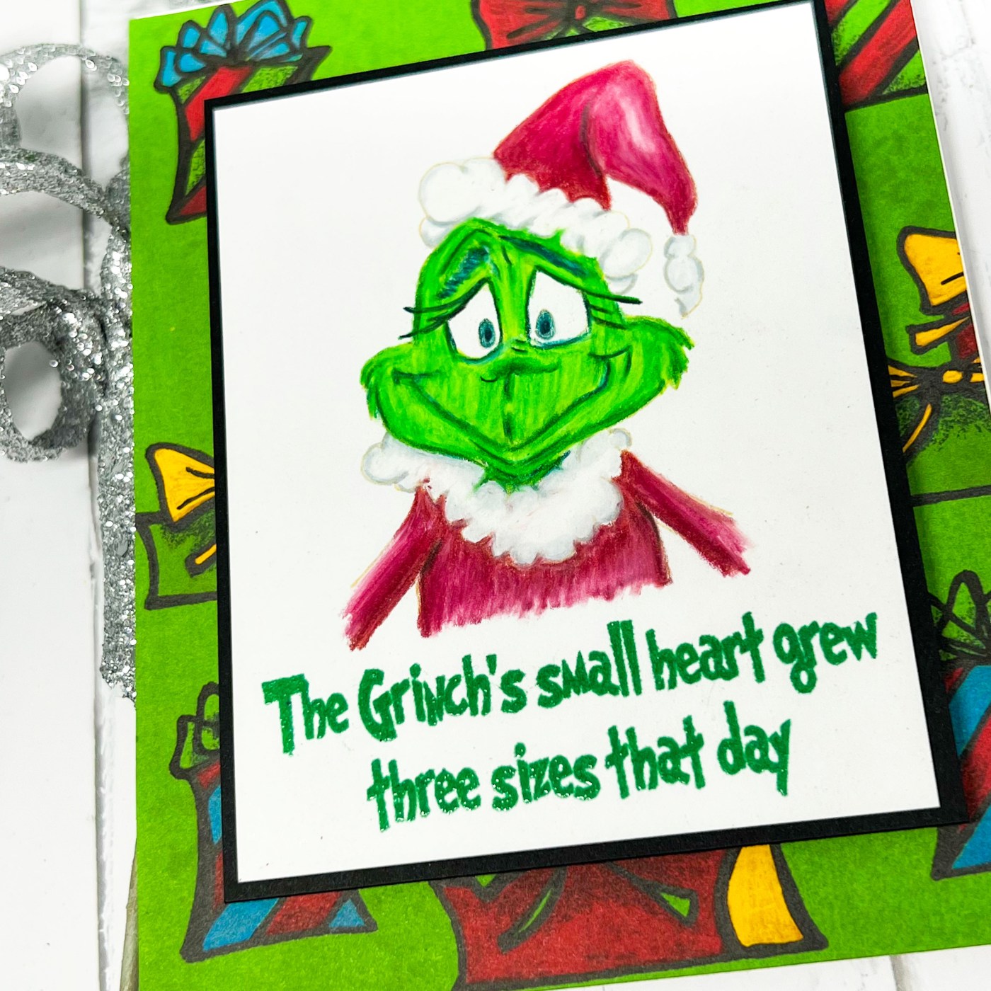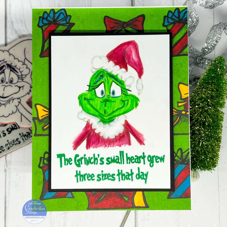 Hello friends! Today I am playing with another Grinch stamp from Crackerbox Stamps. card because you can never have too many Christmas cards. I love al these wonderful Grinch stamps and love that I get to use them all season long.