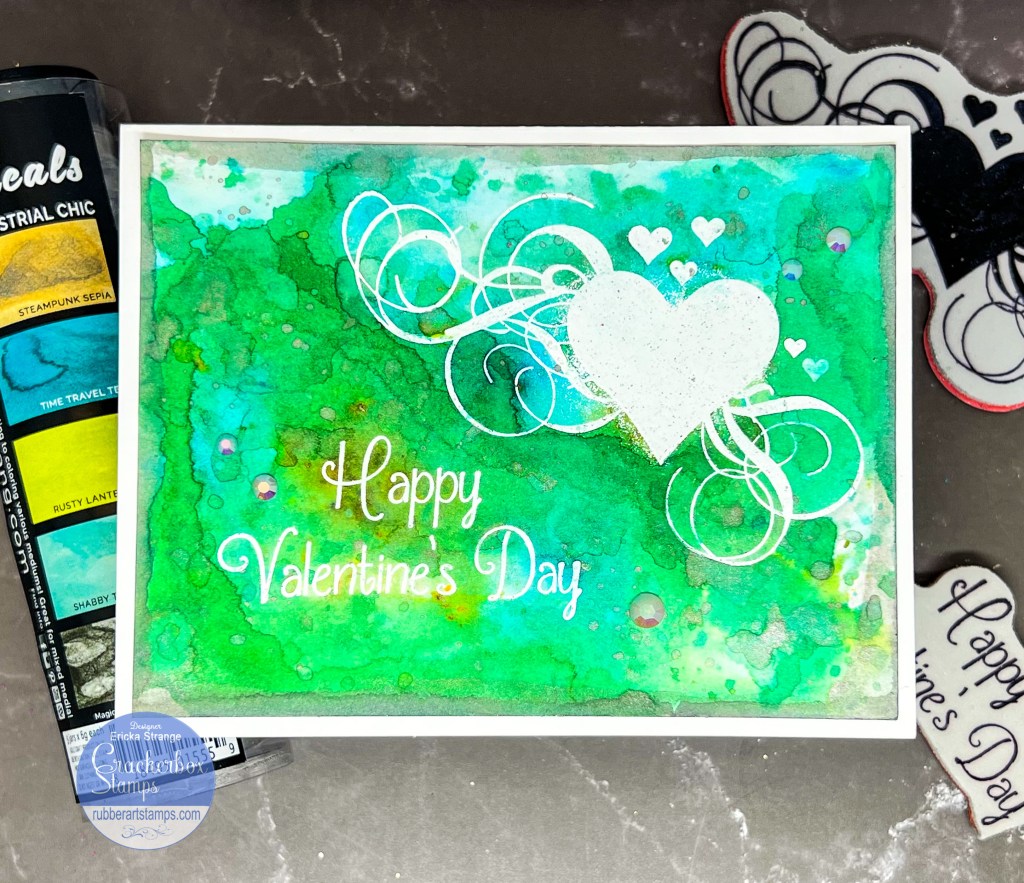 Hello crafty friends! Today I have a watercolor Valentine’s Day card I made using the Crackerbox Stamps Swirly Heart stamp along with the Happy Valentine’s Day sentiment.