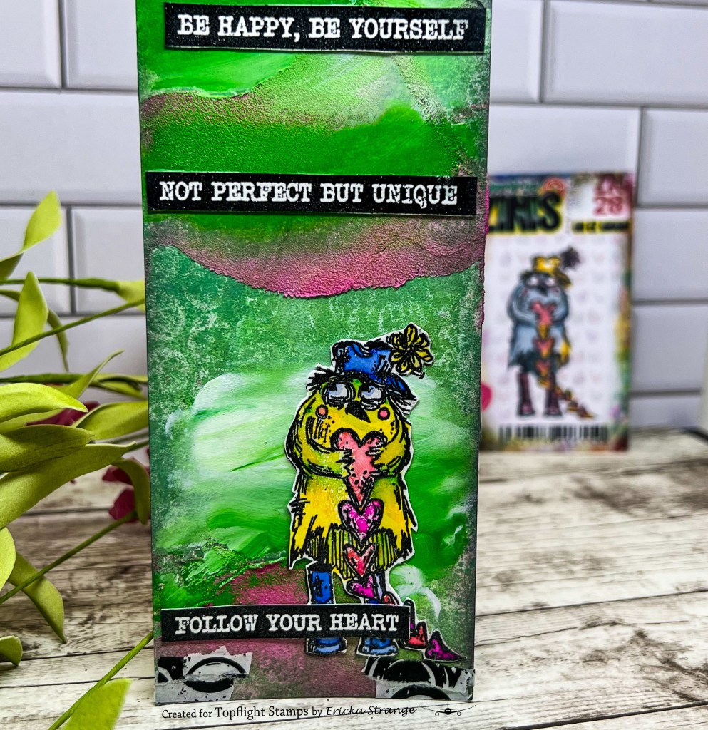 I stamped this fun Zinski Zini 28 and clear heat embossed it. I then took the Spectrum Noir Colorista Watercolour Markers and colored it up. I love these bright colors and they were easy to blend together.