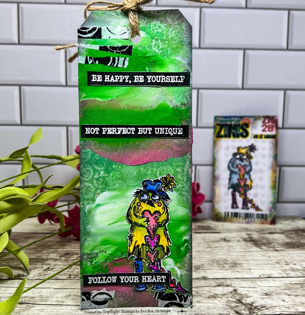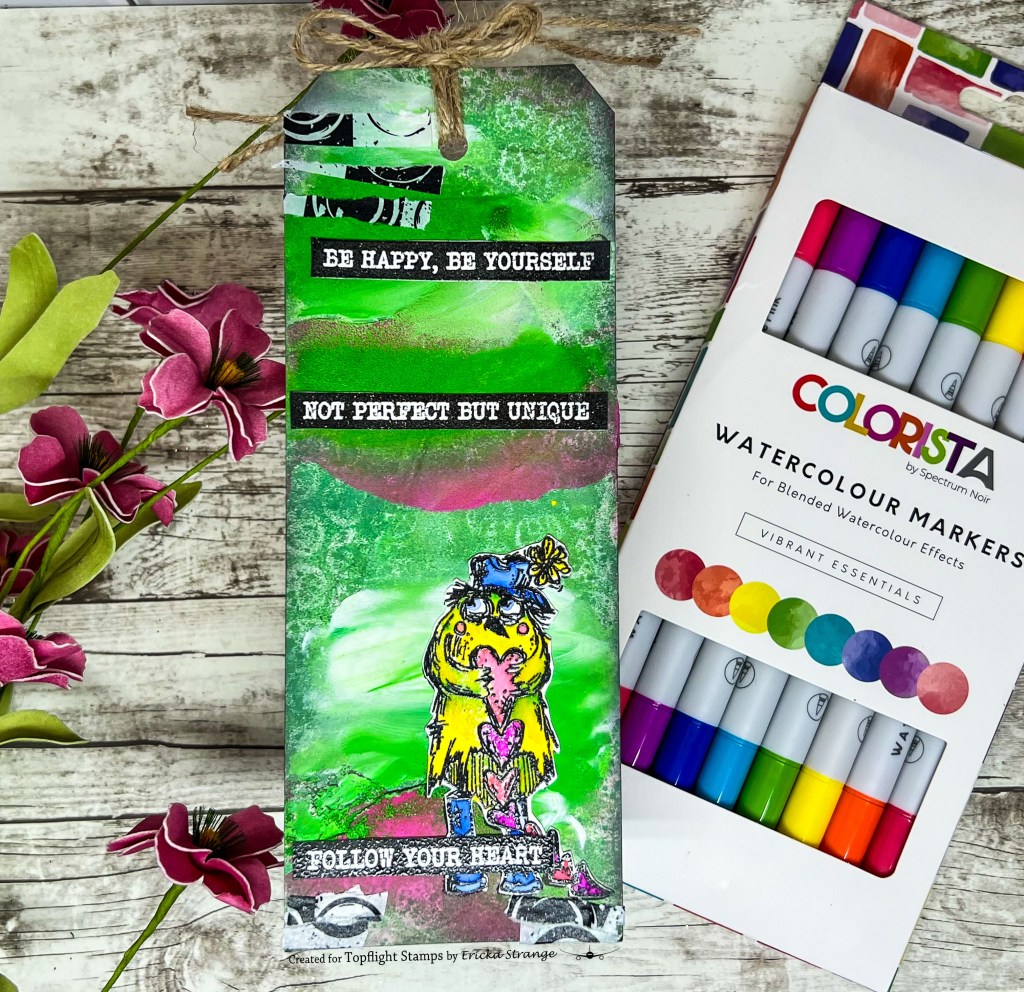 Hello friends, today I have a bright tag using the PaperArtsy Zinski stamp along with the Colorista Watercolour Markers.