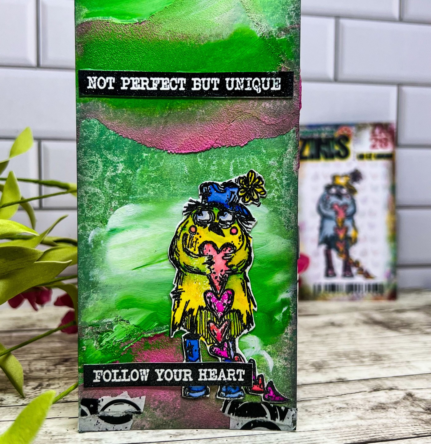 I stamped this fun Zinski Zini 28 and clear heat embossed it. I then took the Spectrum Noir Colorista Watercolour Markers and colored it up. I love these bright colors and they were easy to blend together.
