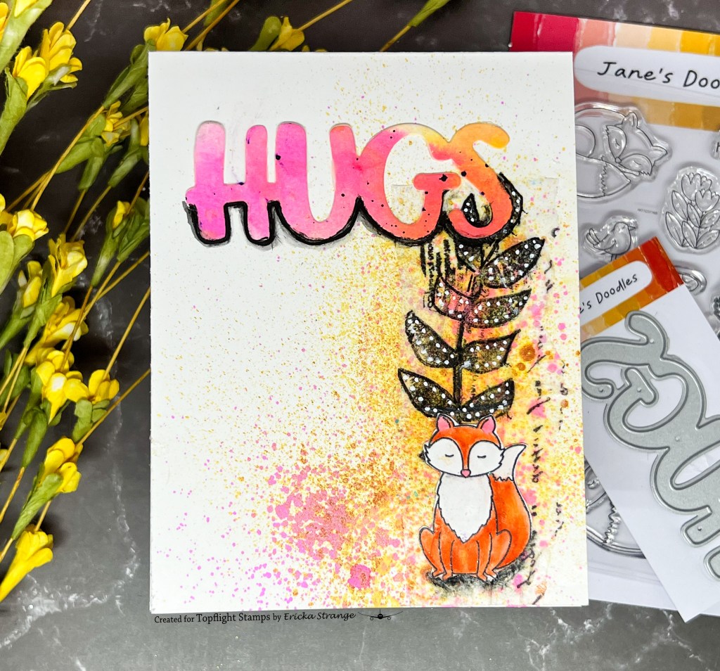 Happy Friday crafty friends! Today I have a simple card I made using the Jane’s Doodles Sleepy Fox along with this great Hugs die. I love this large die and it is perfect to create a card for a friend.