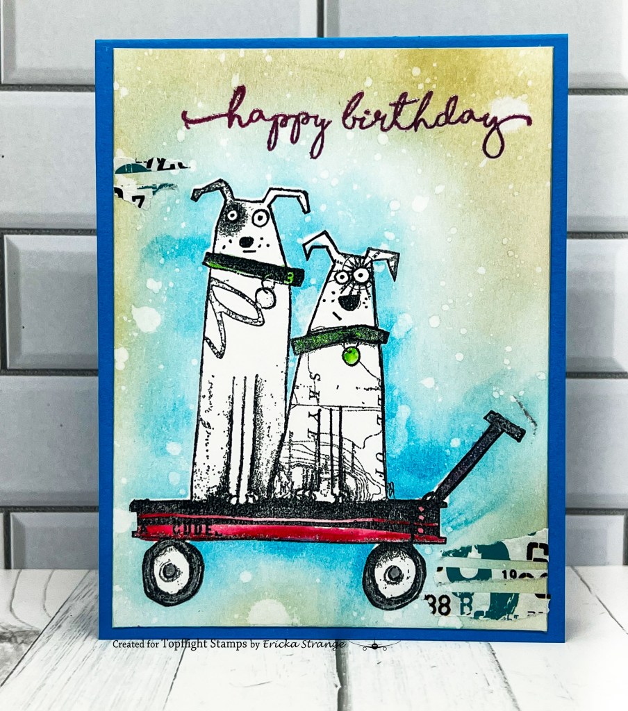 Today I thought I’d make a quick birthday card using the Waiting for Their Next Adventure stamp. These dogs are so fun and I thought I would pair them with the Visible Image Go To Words.