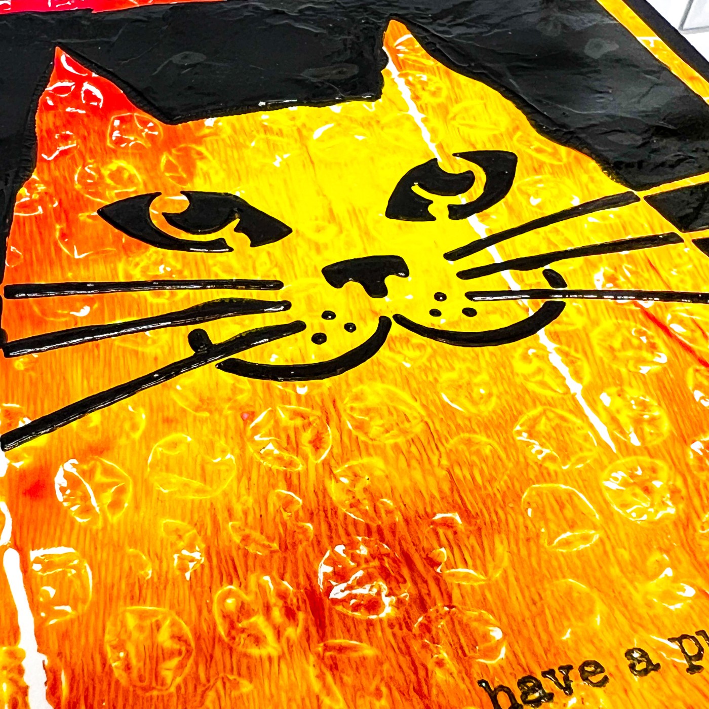 I started by making a gel press print using the Art By Marlene Acrylic Paint Set in Intense. I love these bright colors and thought it would be purrfect for my cat. I used some bubble wrap before I pulled my print to add a little more texture.