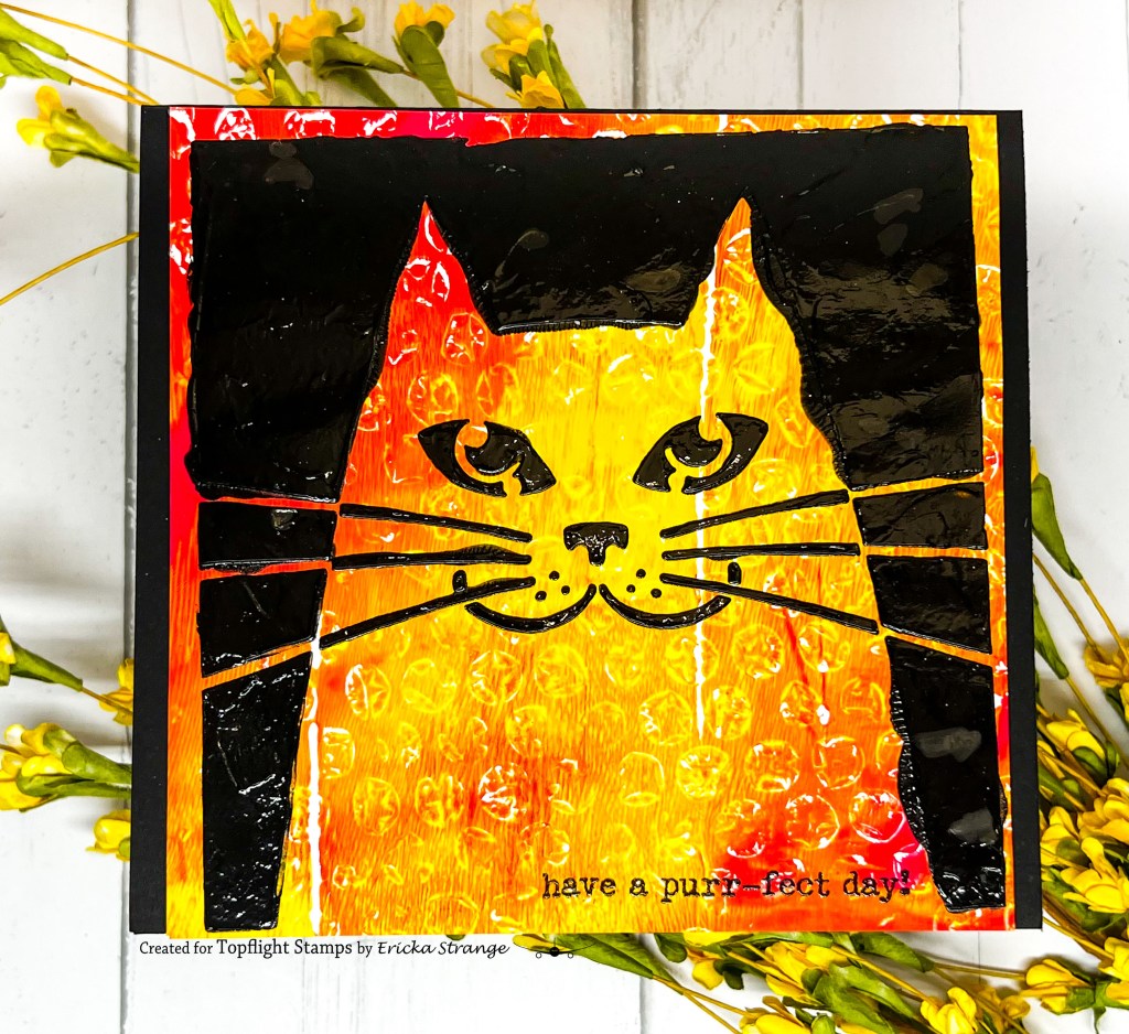 Hello crafty friends! Today I am over on the Topflight Stamps blog playing with the new Visible Image Cat’s Whiskers stencil. Don’t tell anyone but I’m not really a cat person, definitely more of a dog person as we have two. But when I saw this stencil and the That Lovin’ Feline stamp set, I just had to get them.