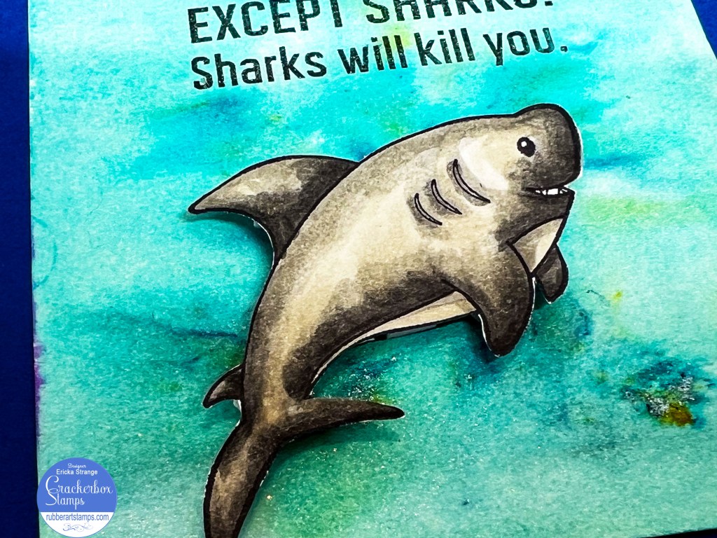 I colored up Clyde the Shark with Copic markers and fussy cut him out to attach him to my card.