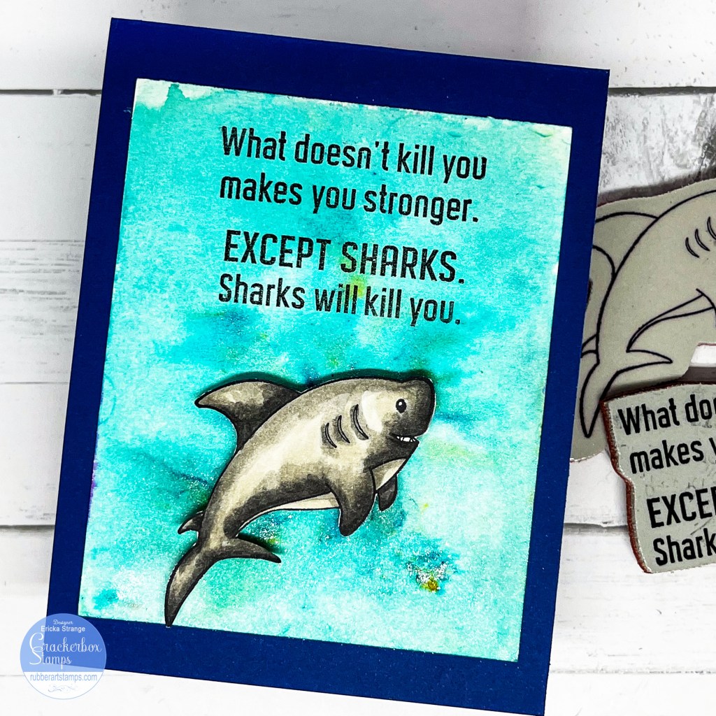 Hello friends! Today I have a fun encouragement card made with the Crackerbox Stamps What Doesn’t Kill You sentiment paired with Clyde the Shark.