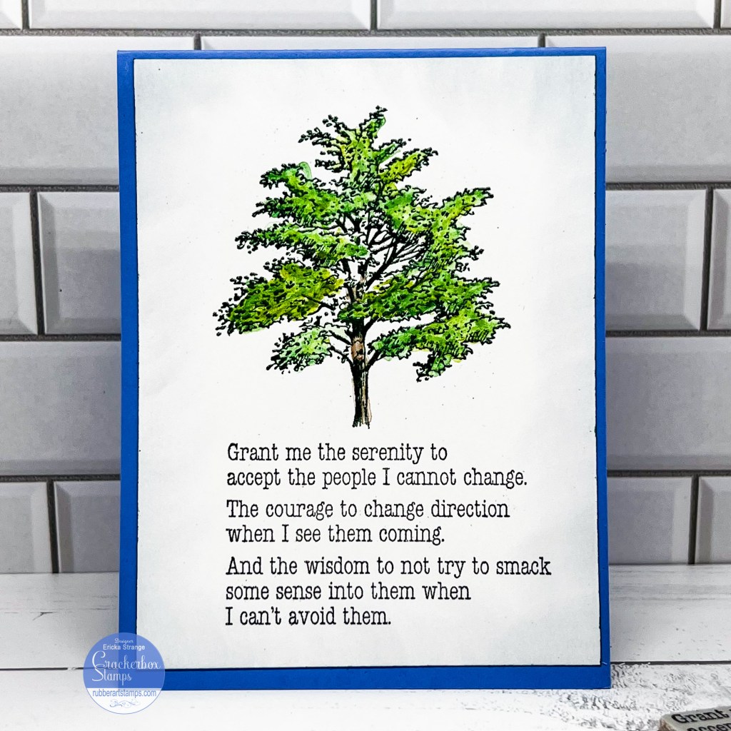 Hello friends! Today I have a simple and snarky card using the new Crackerbox Stamp Grant Me Serenity sentiment.