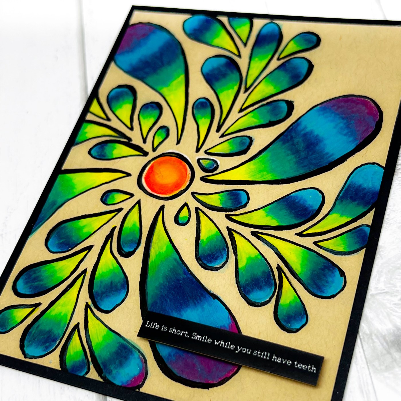 I love this large stencil and used a pencil to trace it. I then used my colored pencils and colored up the areas.