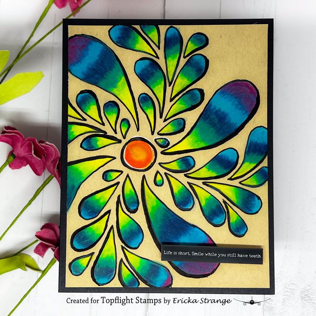 After I was done coloring up the shapes, I used a black paint pen and traced around the shapes to help them pop. I added the sentiment from the AALL & Create Bite Me Black Ephemera to complete my card and add a little snark.