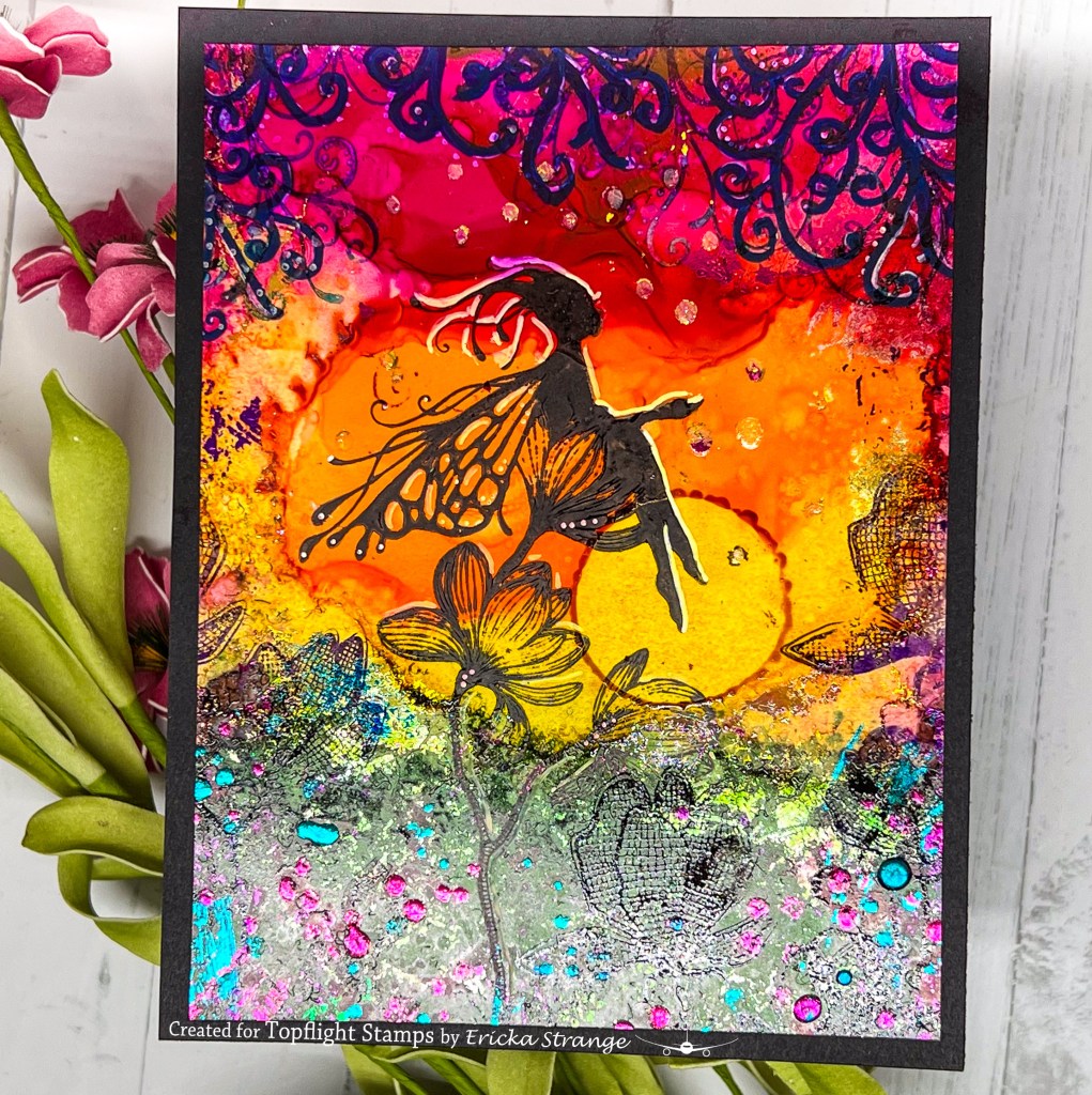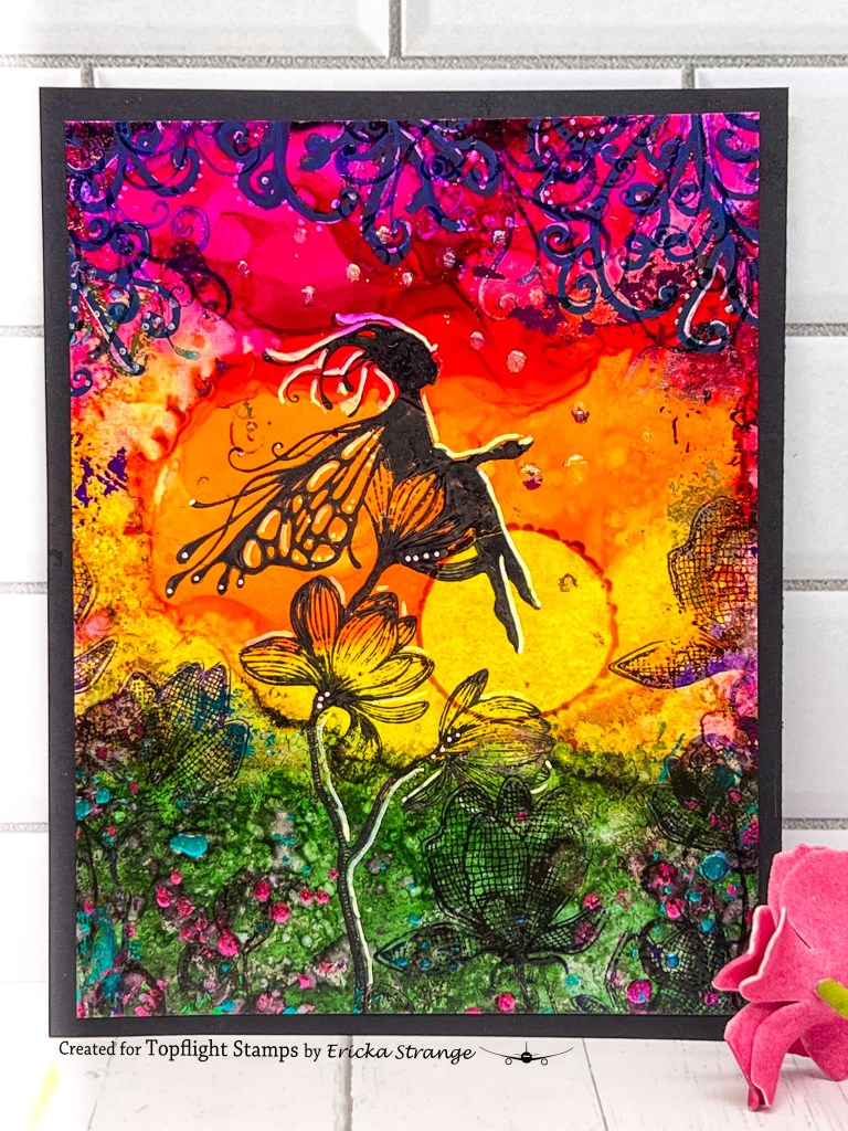 I created a background using alcohol inks and then took out my Lavinia Stamps to create a fun scene.