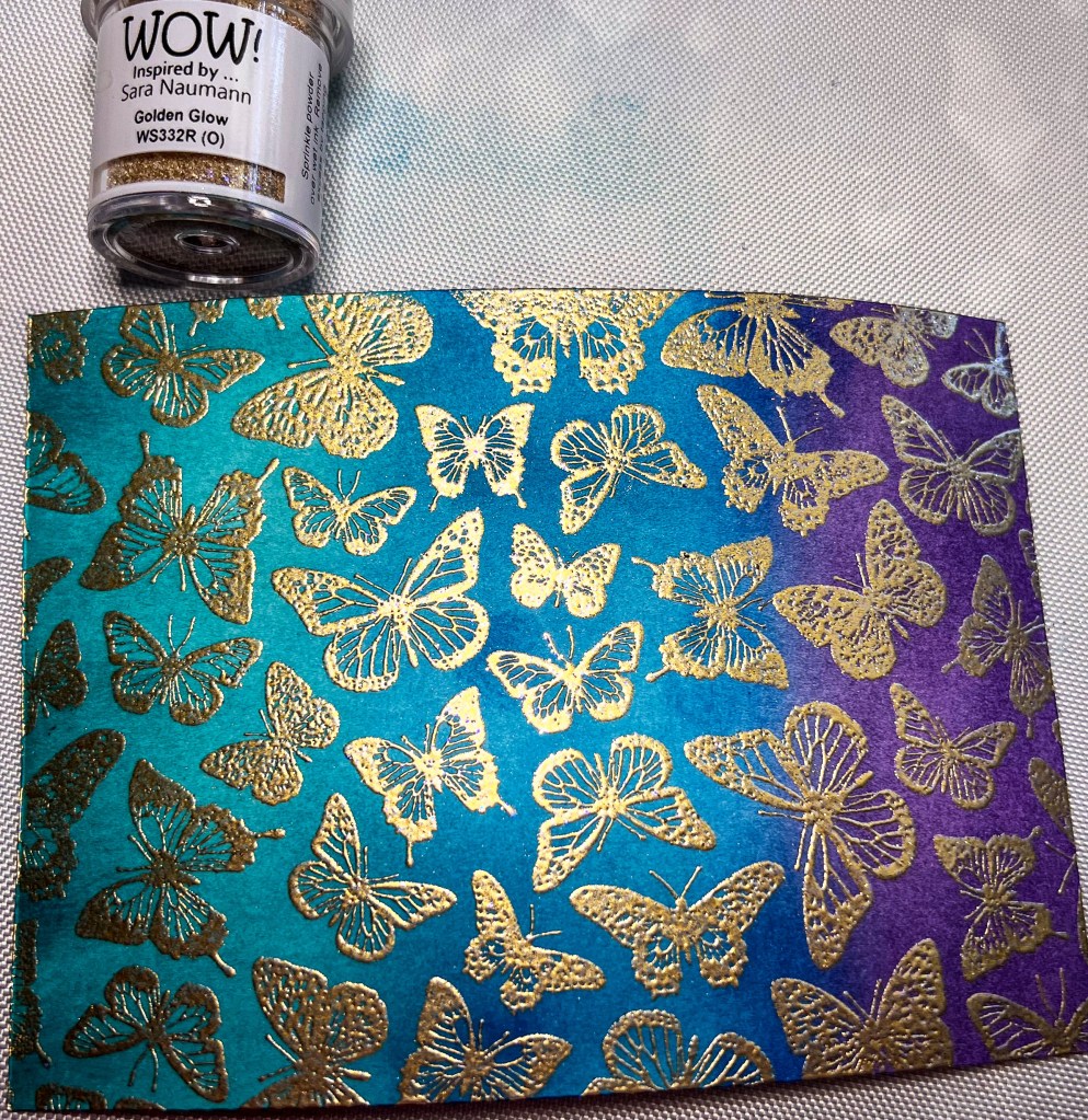 I used the WOW! Golden Glow Embossing powder and heat embossed it up the beautiful background.