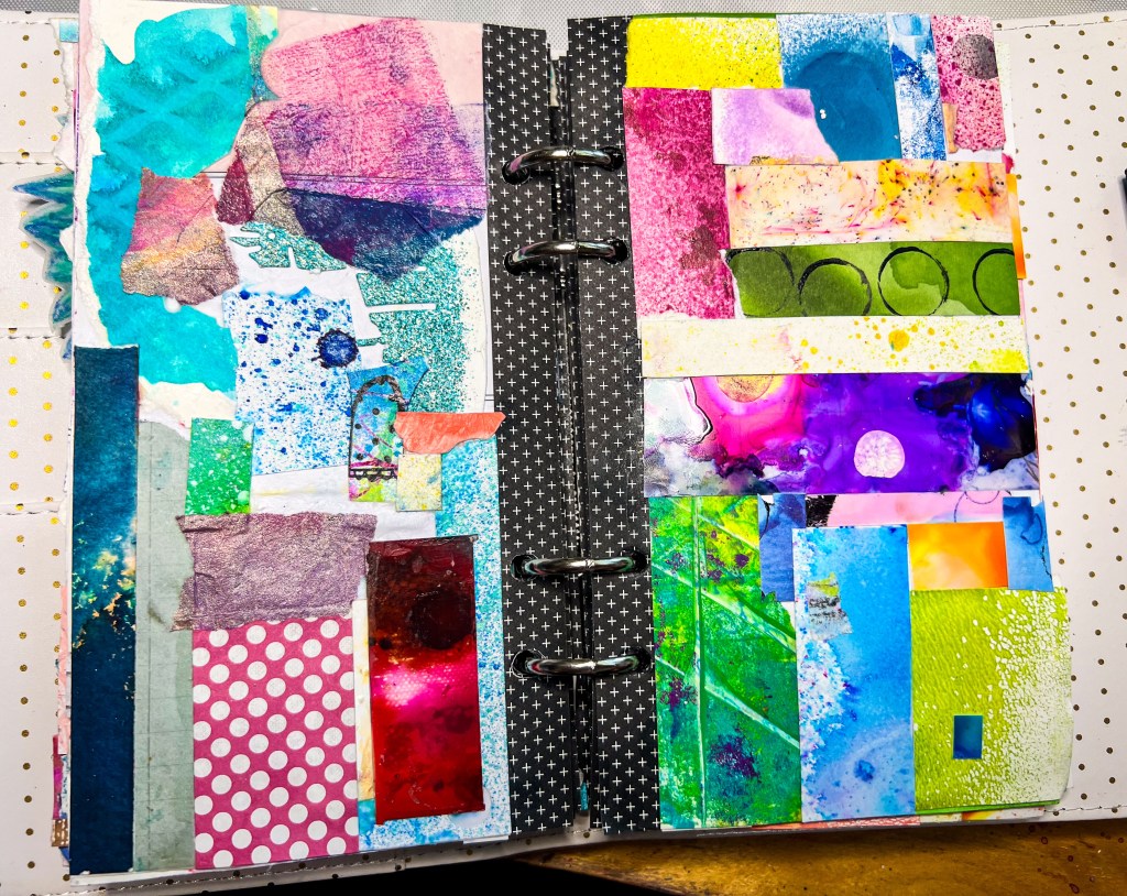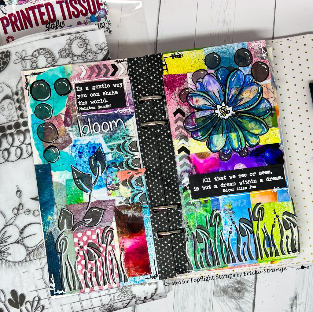 Hello friends! Today I am playing with the PaperArtsy JOFY Printed Tissue 3. I created a scrap journal using an old planner and leftovers from lots of projects. I took an hour to clean out my scrap pile and randomly place pieces on the old planner pages.