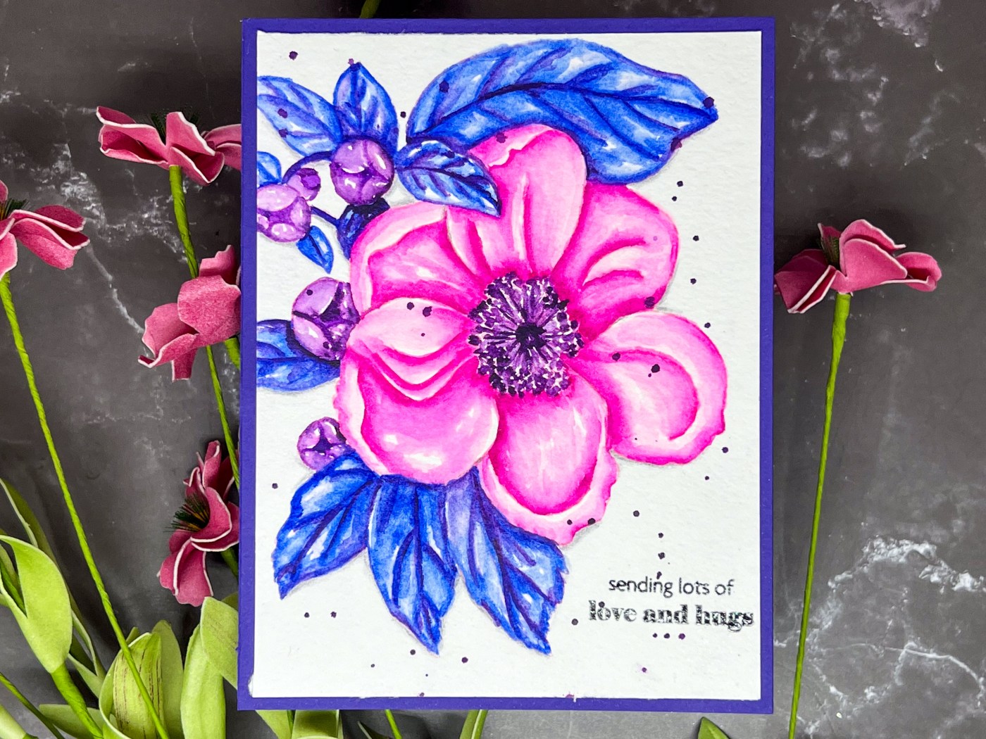 On my second card I used the Altenew Watercolors to paint up the beautiful bloom.