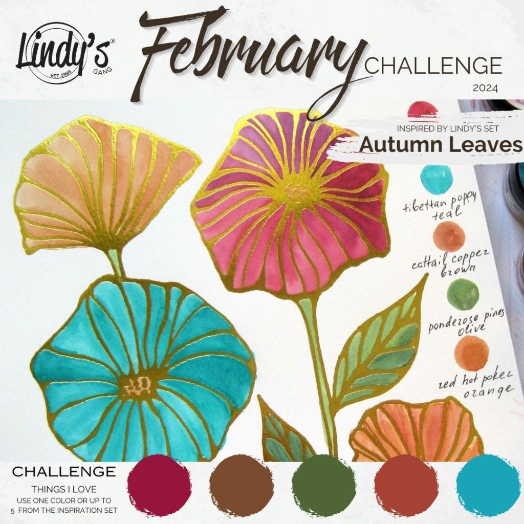 Hello friends! It’s February which means it is time for another fun Lindy’s Color Challenge. This month its all about using the Autumn Leaves and Things I Love.