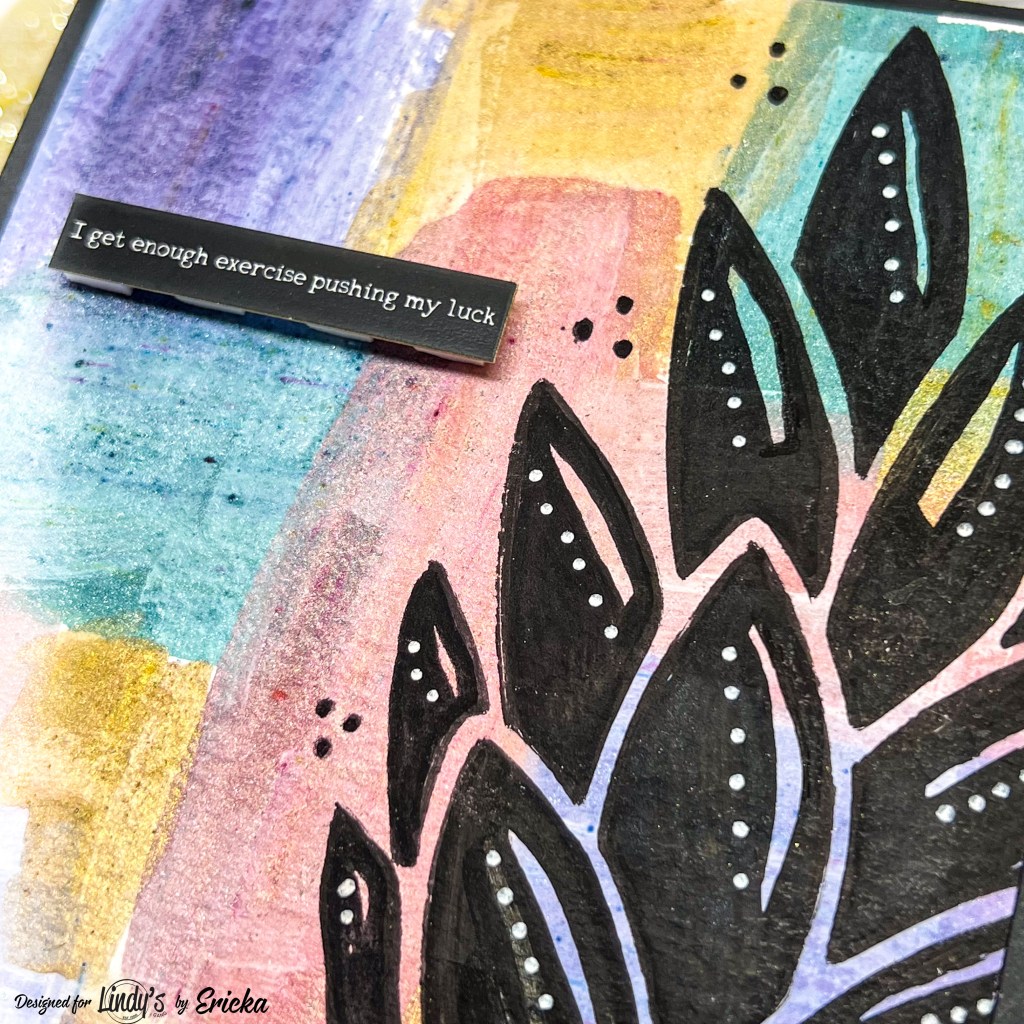 I filled in the leaves with the black pen and left a little bit open for a colorful highlight. I added some white and black pen embellishments and finished my card with this fun sentiment from AALL & Create.
