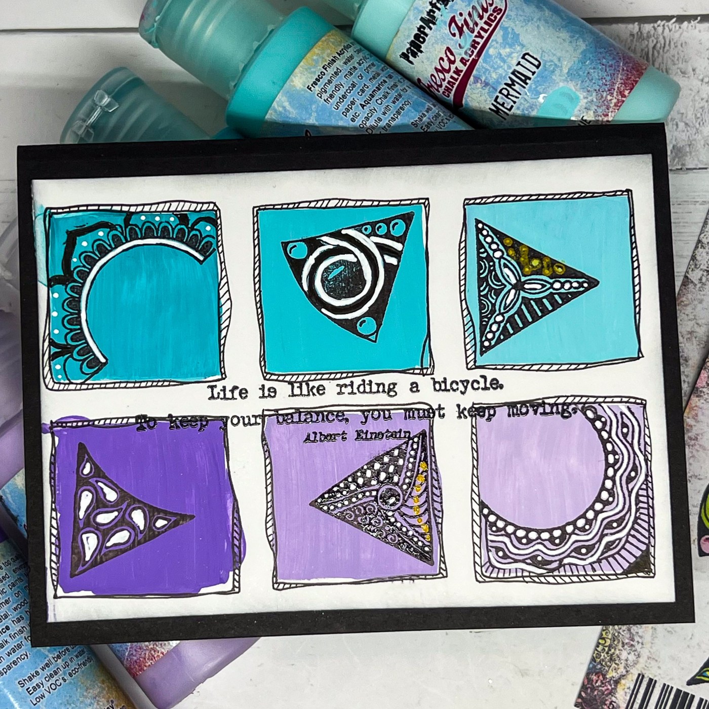 Hello friends! Today I am playing with some PaperArtsy to create an artsy card. I started out with the new JOFY PS 423 Grid Journal stencil and pulled out my PaperArtsy Fresco Acrylic Paints in Beach Hut, Aquamarine, Mermaid, Berry Nice, Globe Thistle, Moon Light.