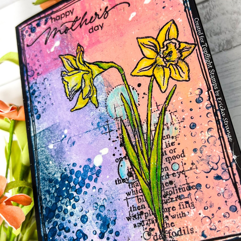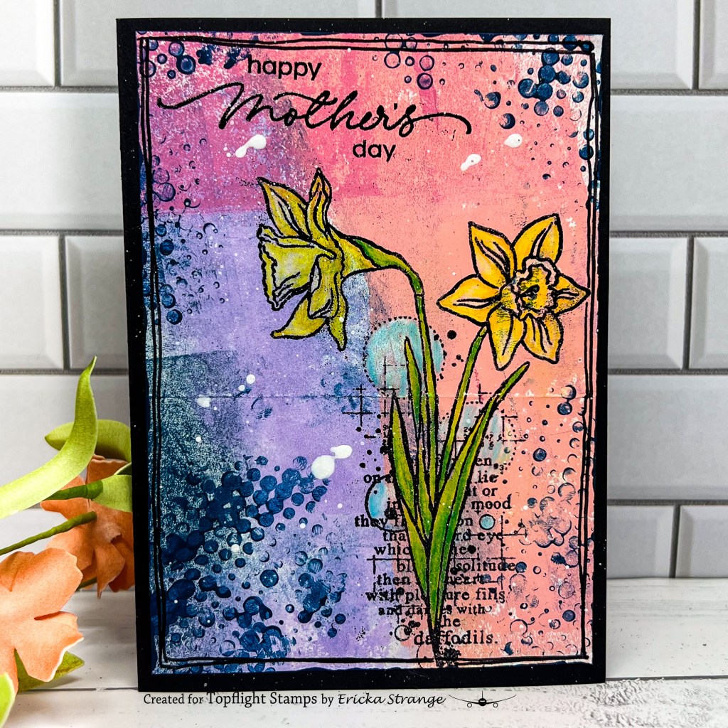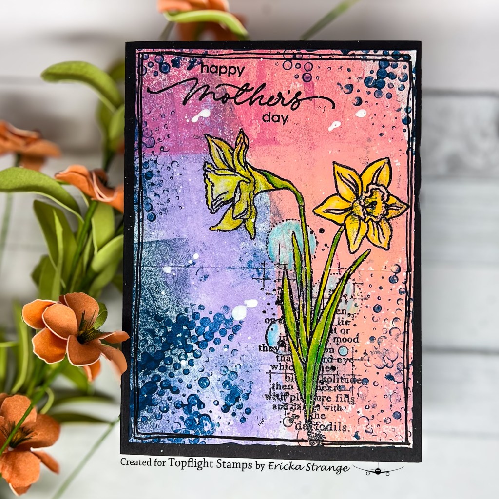Hello friends! Today I have a Mother’s Day card using the Visible Image Golden Daffodils set along with the Grunge Tone stamp.
