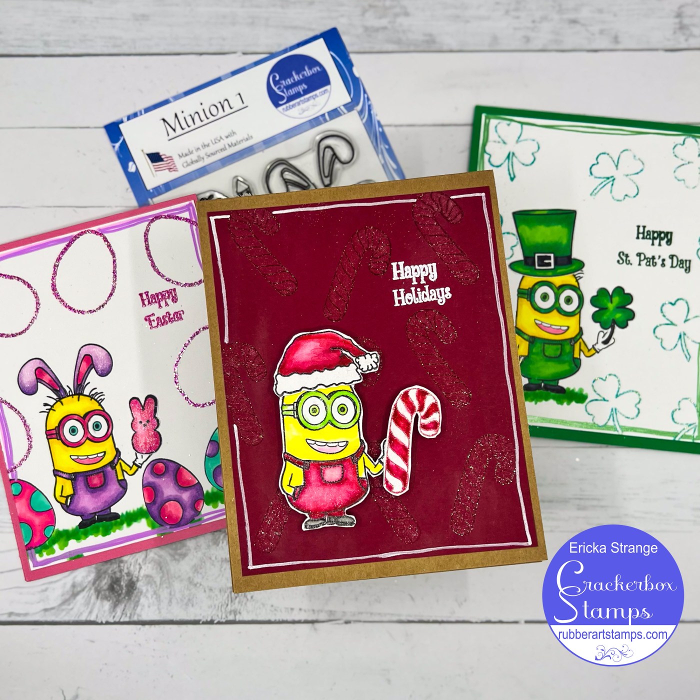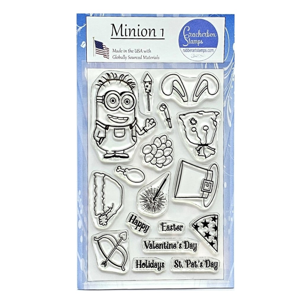 Hello friends! I hope you are doing well and enjoying the last bit of summer. Today Crackerbox Stamps is celebrating with a new release and I love this Minion 1 set and all the fun accessories included and I had to make a set of cards to celebrate.