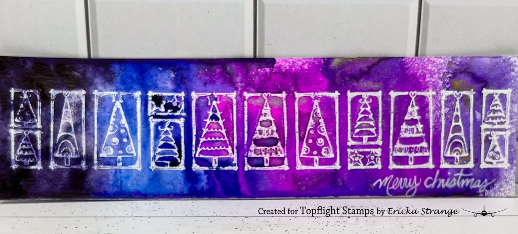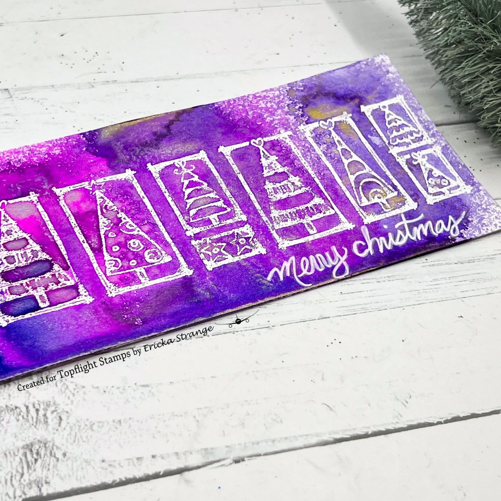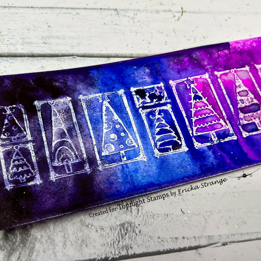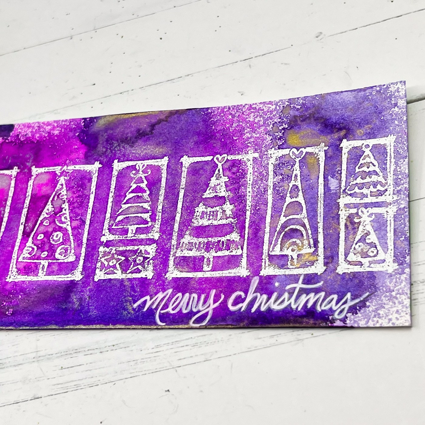I started by stamping the O Christmas Tree image on watercolor paper and heat embossing it in white. This technique not only adds texture but also creates a resist effect that’s perfect for vibrant backgrounds.