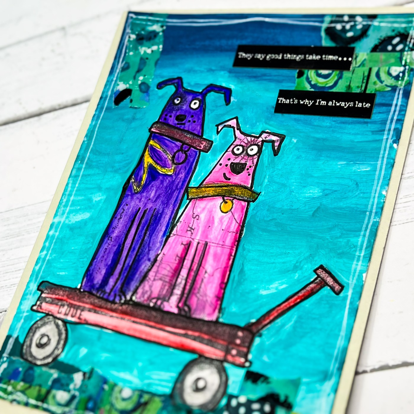 To start, I stamped the charming image using Versafine Clair Nocturne ink—a favorite for crisp details. Then, I dove into my collection of PaperArtsy paints to bring the scene to life. With their vibrant and rich hues, these paints made creating a colorful, textured look a total joy.