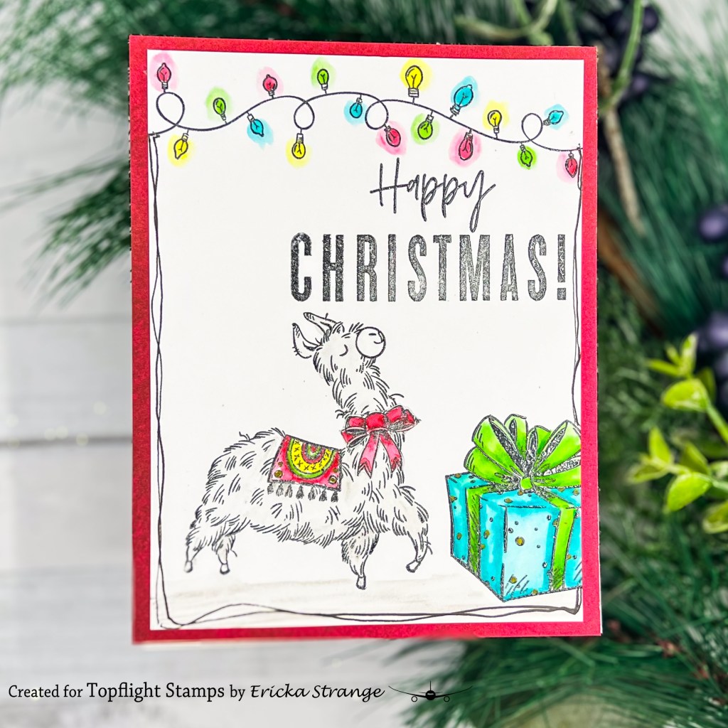 1. Stamp & Accessorize: I started by stamping the llama and some adorable holiday accessories, including twinkling lights, a cheerful present, and a big festive bow. Because, really, what’s a holiday llama without some sparkle?