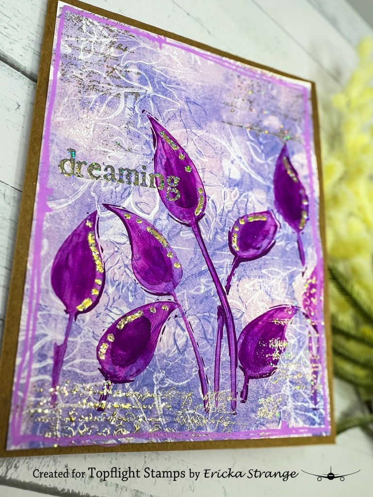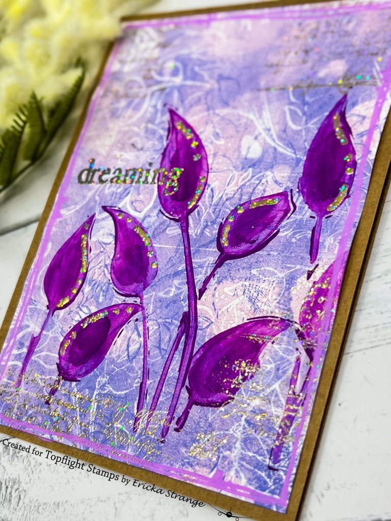 I hope this project inspires you to dust off your gel prints, grab some stencils, and get a little messy this weekend! There’s something so satisfying about layering texture, color, and sparkle to create a card that feels like a little piece of spring. 🌷