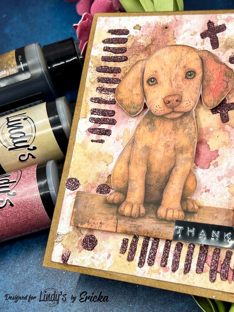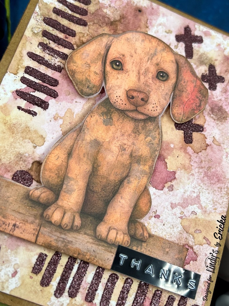 Every card needs a focal point—and mine came in the form of the cutest little pup from Art House Whimsy. I printed and fussy cut him out, then popped him up with foam tape to give him some playful dimension. To finish it off, I reached for my trusty label maker and added a simple sentiment that keeps the focus on the art and emotion.