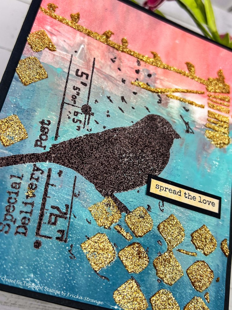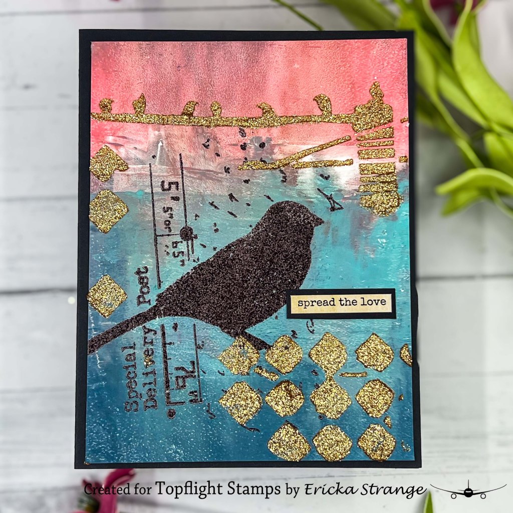 This project is all about texture, shimmer, and layering different mediums. Between the bold gel press colors, glossy embossed images, and glittery stencil birds, the card feels alive with nature’s energy. Thanks so much for stopping by today! I hope this sparkly card inspires you to mix up your gel prints with stamping and stencil textures for your next project. Wishing you a creative and joyful close to the month and enjoy the last week of August! 💖