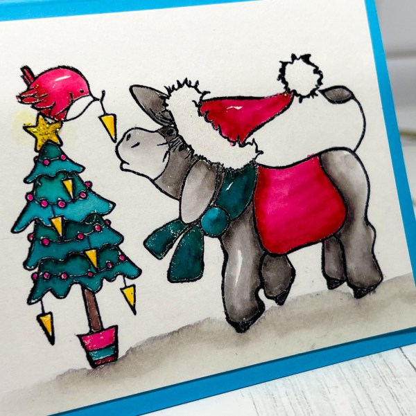 Hello friends! Today I have a small Christmas card made using the Hobby Art Dudley Does Christmas set. I love this cute donkey and watercolored him up with some watercolor markers. There are so any cute scenes you can make with this stamp set. After watercoloring up the image, I added a little handwritten sentiment... Continue Reading →