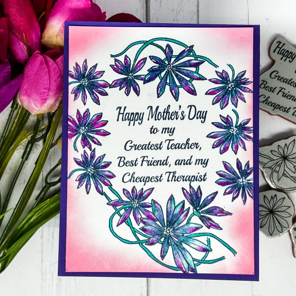 Hello friends! Today I have a Mother's Day card I made using the new release from Crackerbox Stamps. I love the Happy Mother's Day To My sentiment and stamped it in Versafine Clair Twilight ink and clear embossed it. I then stamped the pretty Lupin Large stamp around the sentiment and colored it up with... Continue Reading →