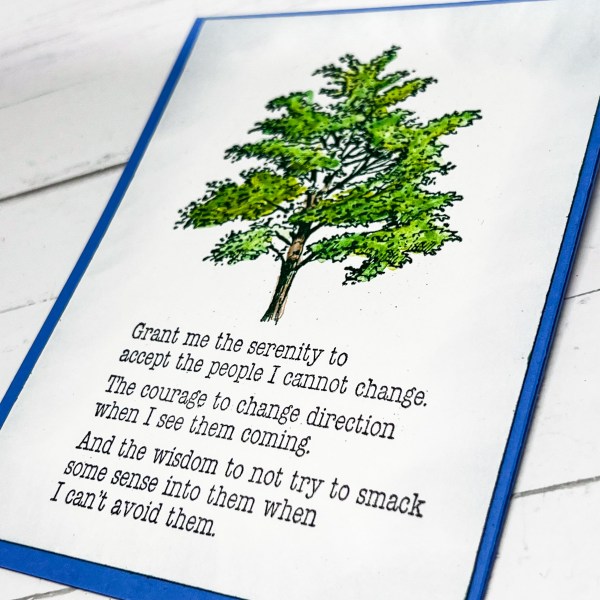 Hello friends! Today I have a simple and snarky card using the new Crackerbox Stamp Grant Me Serenity sentiment. I love this sentiment and may or may not be my feeling this as we end the school year lol. I stamped the the Big Tree 2 in Versafine Clair Rain-forest and colored it up with... Continue Reading →