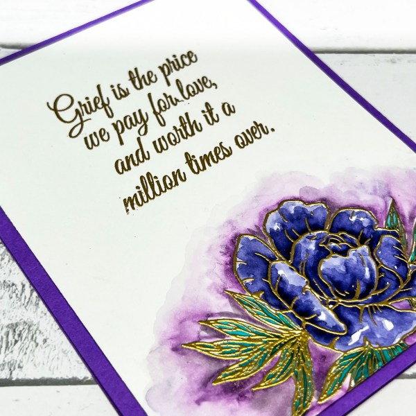 Hello friends, today I have a simple sympathy card that I made for some close friends. I love this beautiful Crackerbox Stamps Peony Lg. stamp and thought some gold embossing would give it a classic look. I watercolored my flower with Zig Real Brush Markers and then stamped the Grief sentiment and embossed it in... Continue Reading →