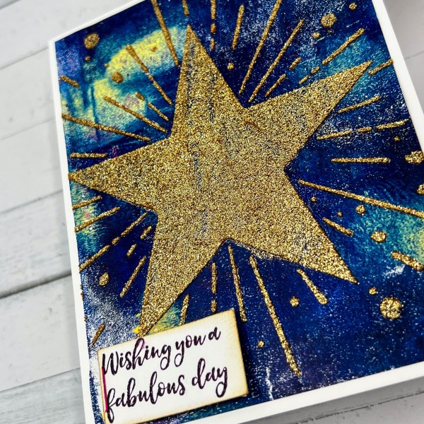 Hello, crafty friends!Today I’m excited to share a quick and sparkly project featuring the fabulous Super Star stencil from Visible Image and a touch of golden glam with Spectrum Noir Glitter Paste in Candlelight Gold. I started with a moody background made from some gel press playtime—a mix of darker hues with hints of yellow... Continue Reading →