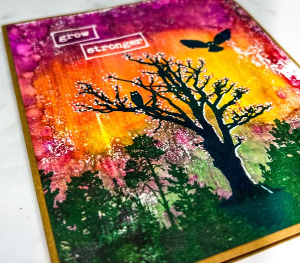 Hello friends! Today I have a Thanksgiving card I made using alcohol inks on photo paper with some Crackerbox Stamps. I used one of my favorite stamps, the Blowing Leaves Tree, and stamped it with Archival Ink. I love all the Blowing Tree stamps as there is one for every season. I paired this one... Continue Reading →