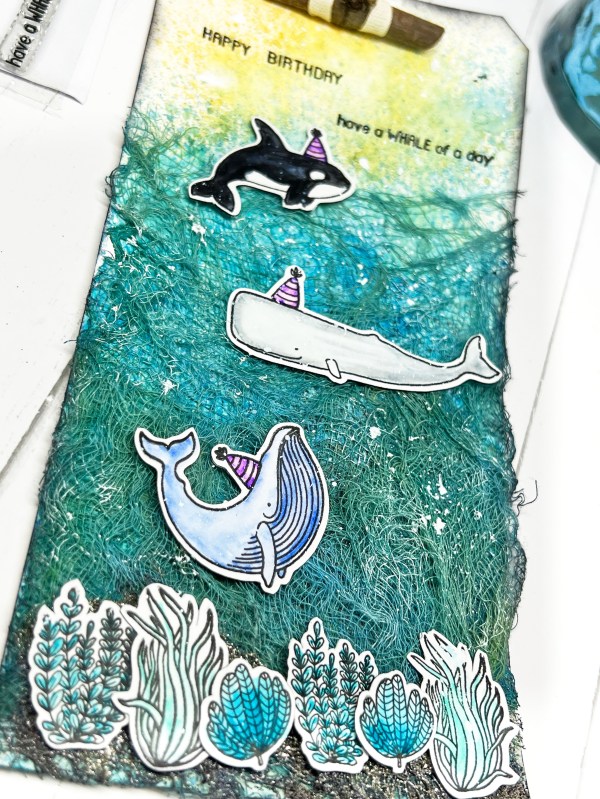 Happy Friday! I'm over on the Topflight Stamps blog today creating a mixed media tag using Jane's Doodles Whales stamps. I started by spraying the Prism Glimmer Mists in Glamour Gold, Boy Blue, and Midnight Black on a large media tag. I also used the mists on some cheesecloth and set it aside to dry. ... Continue Reading →