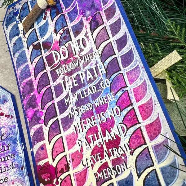 Hello friends! Today I have a couple of tags I created using the Carabelle Studio Geometric #3 Stencil with Lavinia Inks. I started with some ink blending with the Lavinia Elements Inks in Dark Denim, Merlot, and Violet Chalk. When I was done ink blending, I lightly spritzed the stencil with water and laid another... Continue Reading →