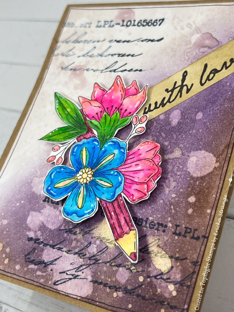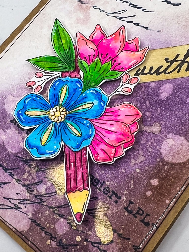 No mixed media card is complete without a bit of shimmer, right? ✨ I gave the background a light mist of Lindy’s Gang Spritz Spray in Golden Sun, just enough to catch the light without overpowering the design.