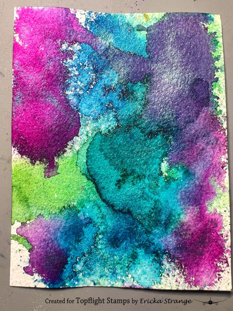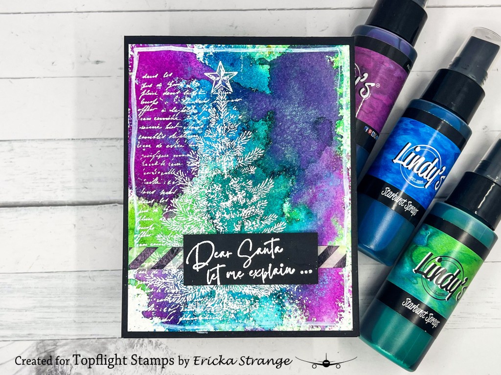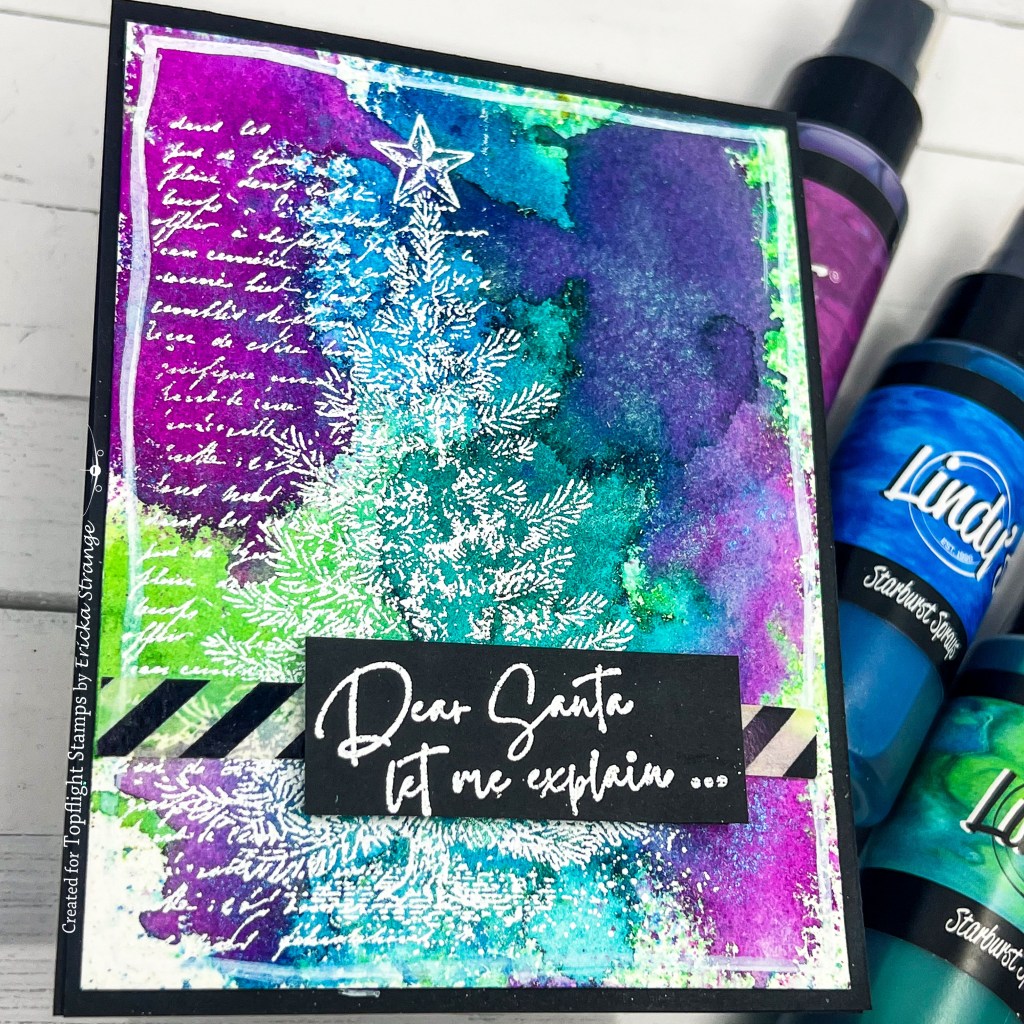 I started by pulling out some of my favorite Lindy’s Gang sprays, this time, I went with the gorgeous Victorian Bouquet Shimmer Set. I lightly sprayed the colors onto watercolor paper, drying between each layer. The soft shimmer and blend of bright hues give instant holiday magic without much effort.