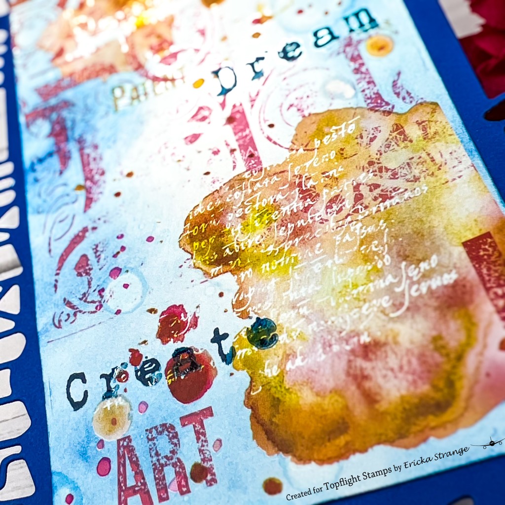 Now for the exciting part! I cut portions of the AALL & Create Rub Ons in Red Red Wine and carefully applied them to my tag using the included applicator. These rub ons transfer so smoothly, and I absolutely love how the colors pop against the Blue Lagoon background. The contrast between the vibrant red and the serene blue is simply stunning.
