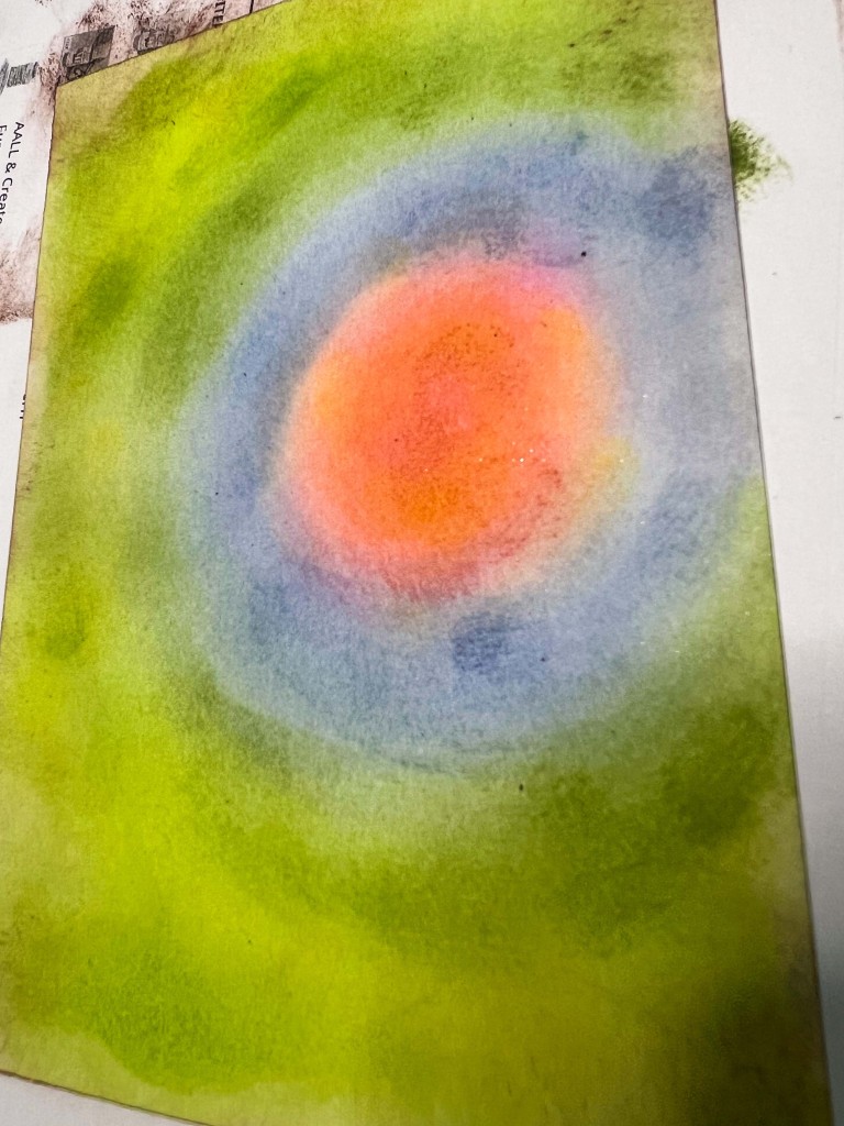 Once you’re happy with your blended background, take a spray bottle filled with water and lightly mist the paper. This will lift some of the ink and create a beautiful, mottled texture. Let the water sit for a few seconds, then blot off the excess with a paper towel. This technique adds a dreamy, ethereal quality to your background.