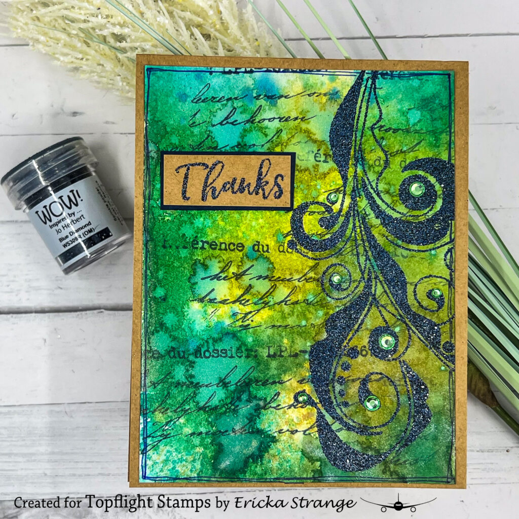 I stamped and heat embossed the design using WOW! Embossing Powder in Blue Diamond , which adds that elegant shimmer and helps the image stand out against the textured background.